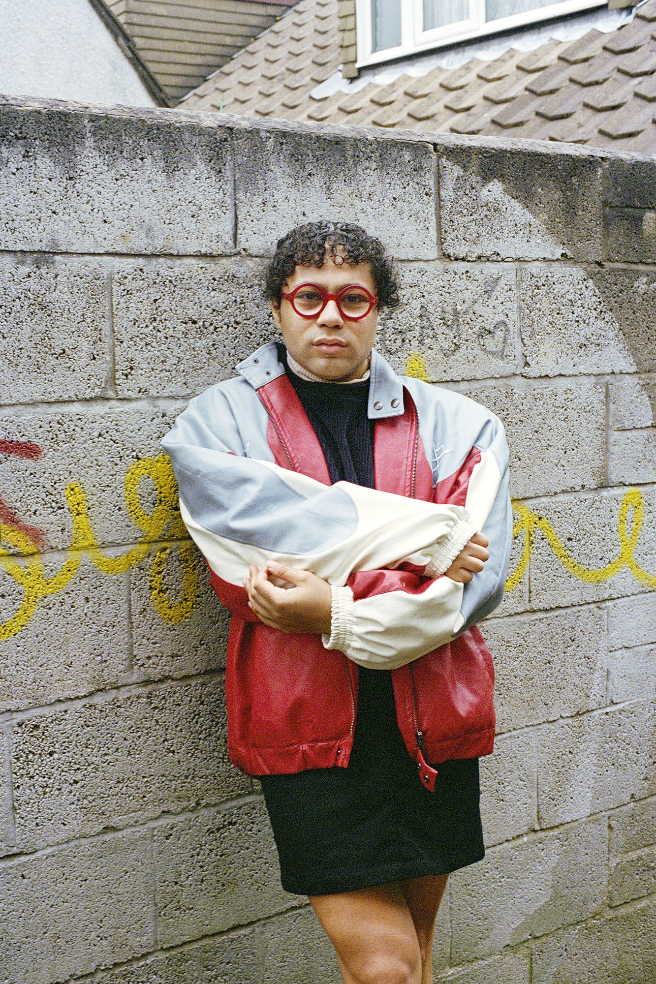 Built in 1919, Hillfields is the oldest council estate in the city, as well as the place Travis spent much of their childhood years. They hadn’t been back to the area in over a decade, but with Rene having been commissioned to create a photographic series about Travis and Bristol, that day felt like the right time to return. As they turned into what would appear to be a nondescript alleyway, Travis stopped and said: “I’ve brought a skirt with me and I really want to put it on, and I really want you to take my photo in this alleyway. Because this is an alleyway where I’ve experienced some fuckery.”