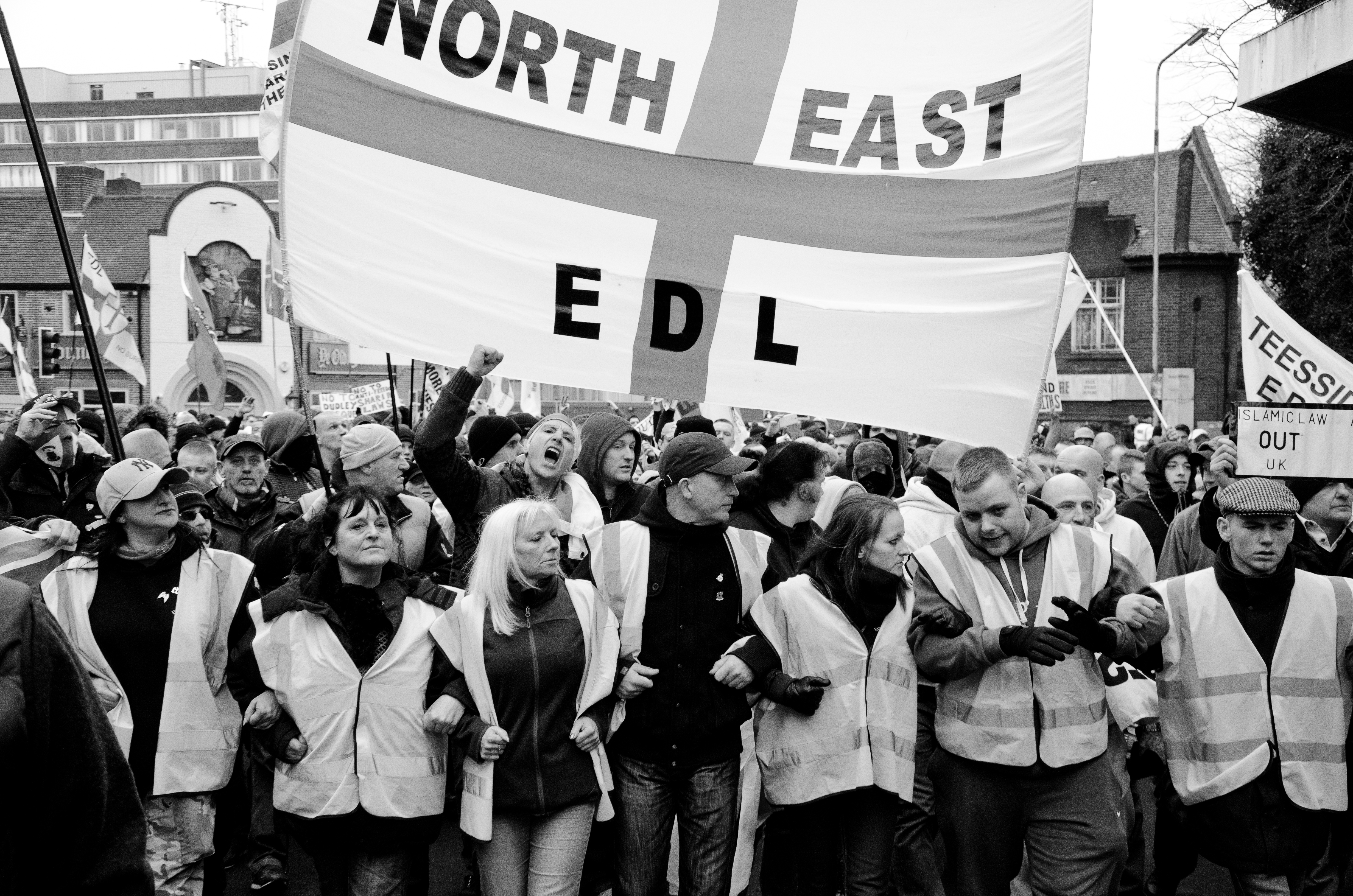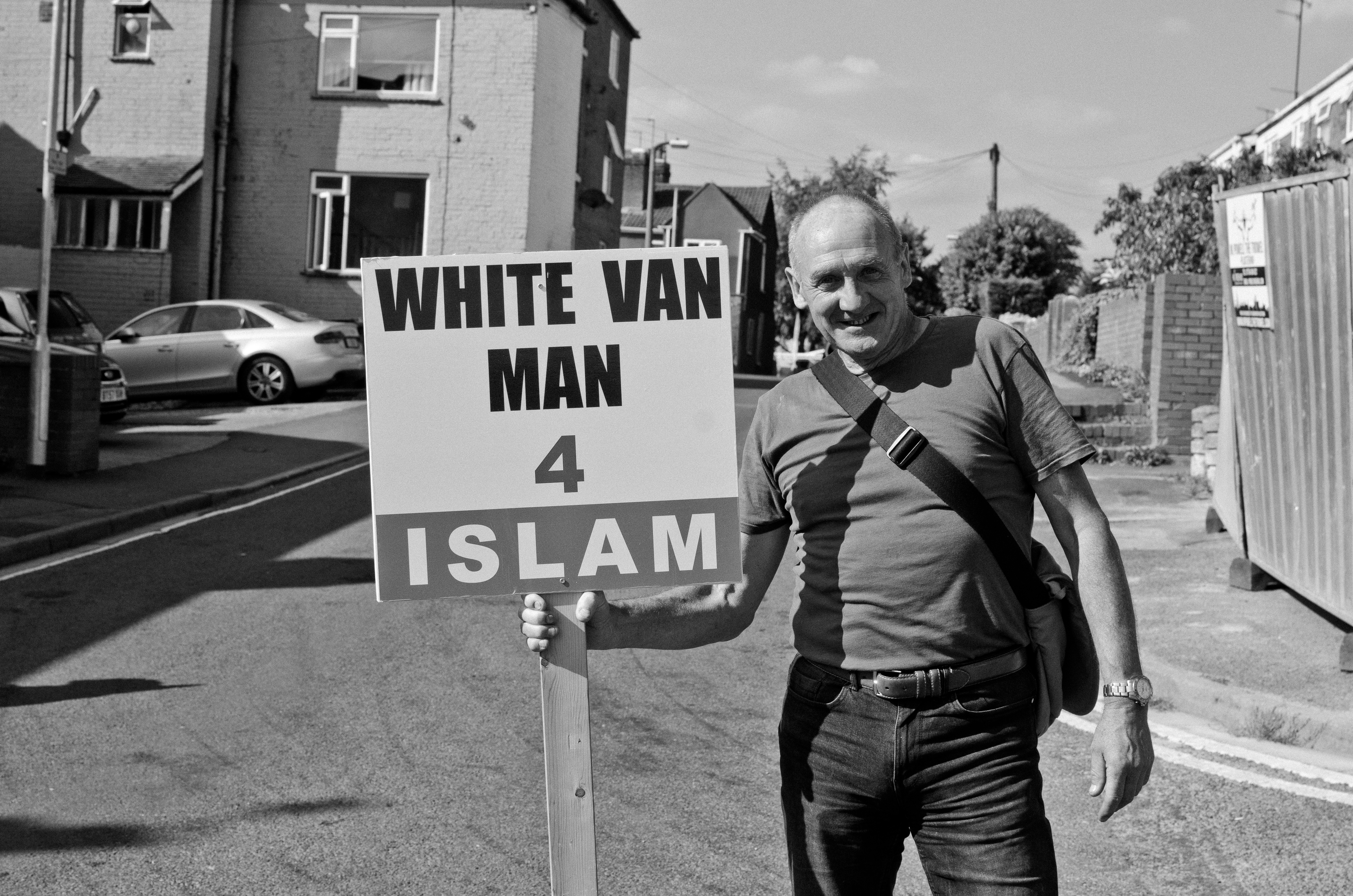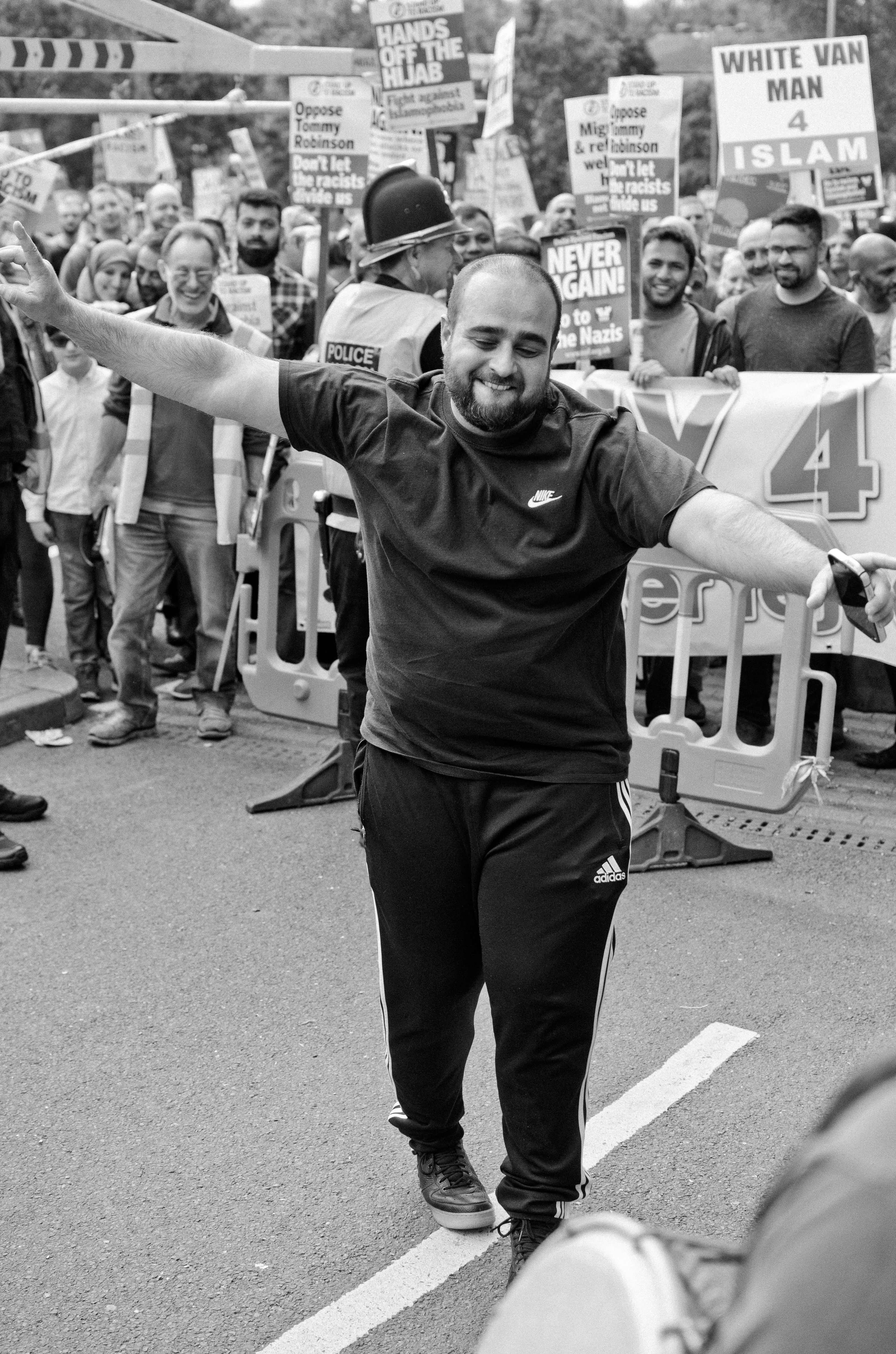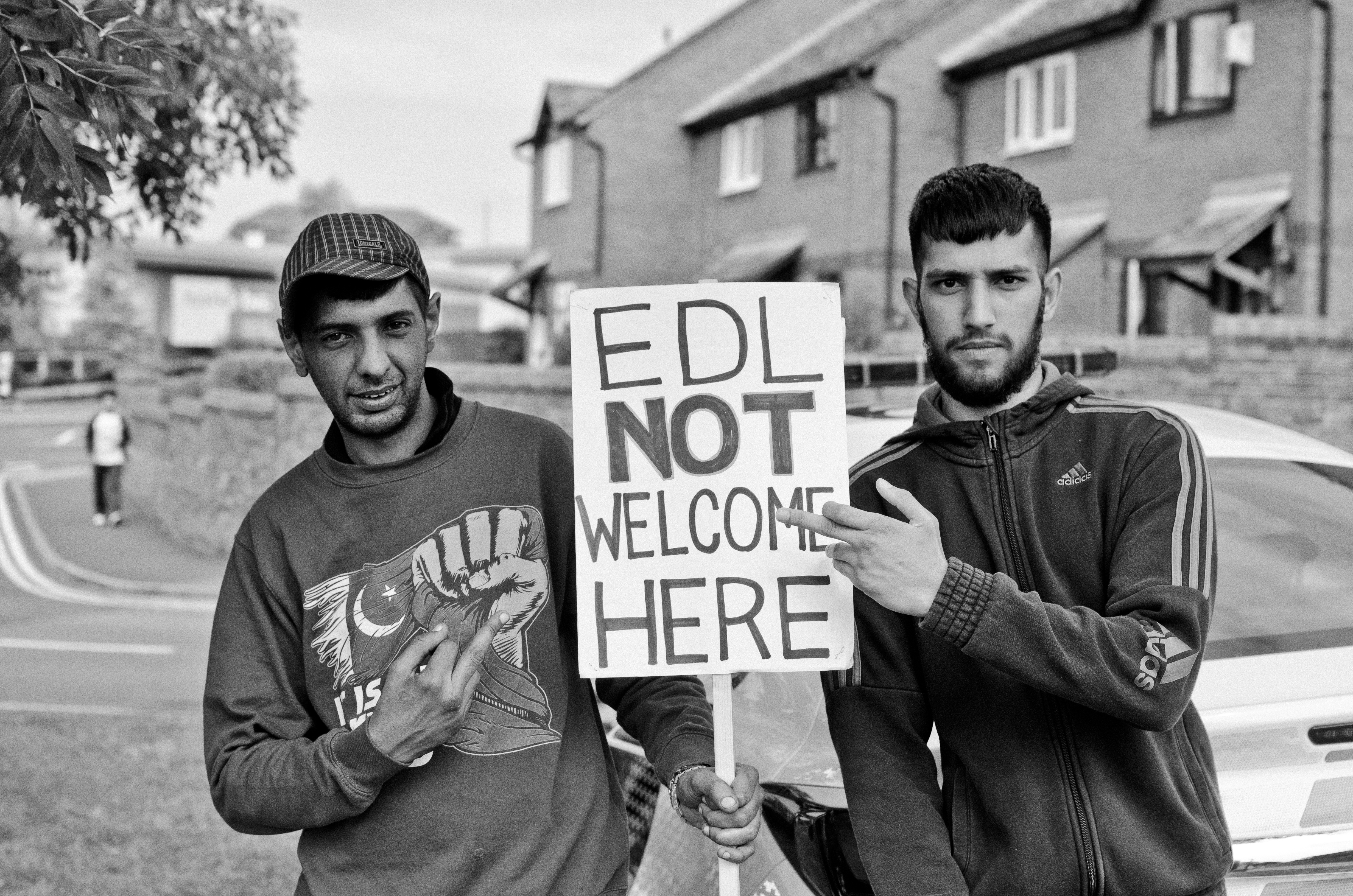 It was a cloudy day in Dudley, a small town in the West Midlands, on May 9, 2015. Around 150 Britain First supporters were protesting plans to build a new mosque, which would replace the smaller mosques being closed down. They swarmed the streets, brandishing Union Jack flags and a banner which read “No More Mosques!” Standing in the middle of all of this was Rizwan Ali, a Birmingham-born Muslim photographer.