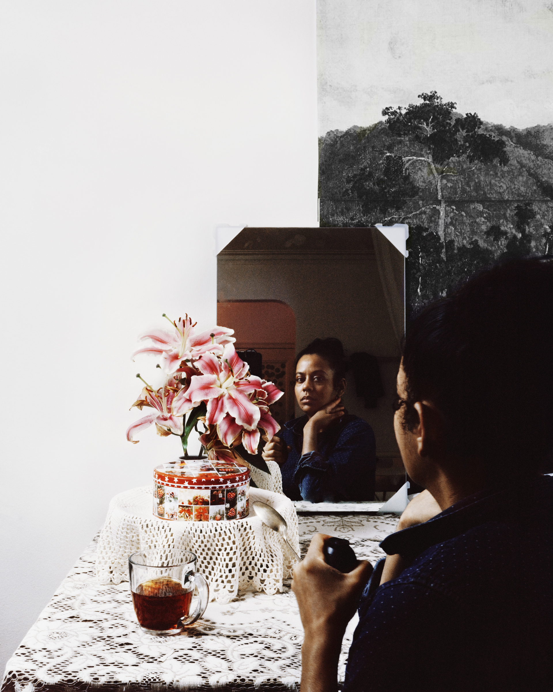 As a Black queer woman of mixed race who left her homeland as a child, Box uses photography to craft new paradigms of identity rooted in lived experience. “My images are made out of fragments that have been put into motion along these routes with the commodification of people and knowledge,” Box says. “The diaspora has been shaped through concepts of value, labor, and desire, and how the Caribbean has been shaped by those forces as a zone of paradise. More than anything else I’m from this global diasporic space; my homeland is everywhere.”