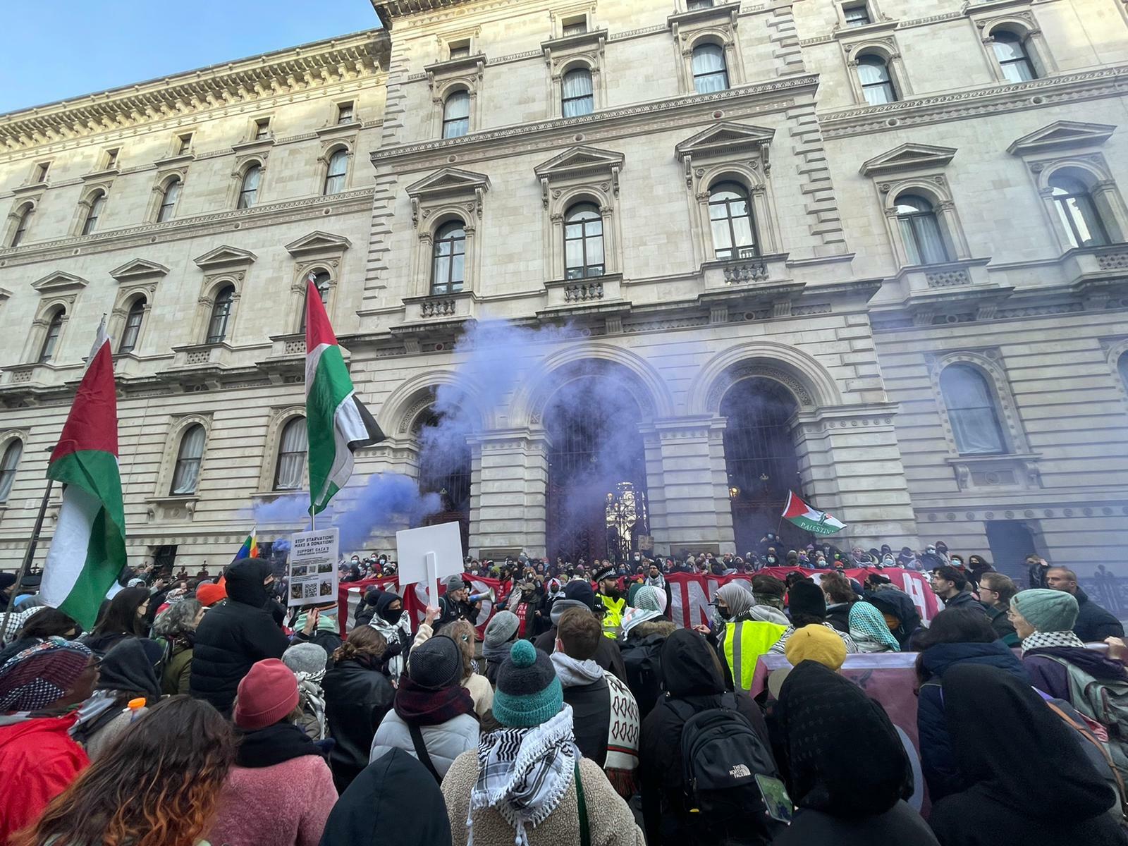 Hundreds of people have descended on Whitehall this morning to protest the British government’s complicity in the ongoing genocide in Gaza.