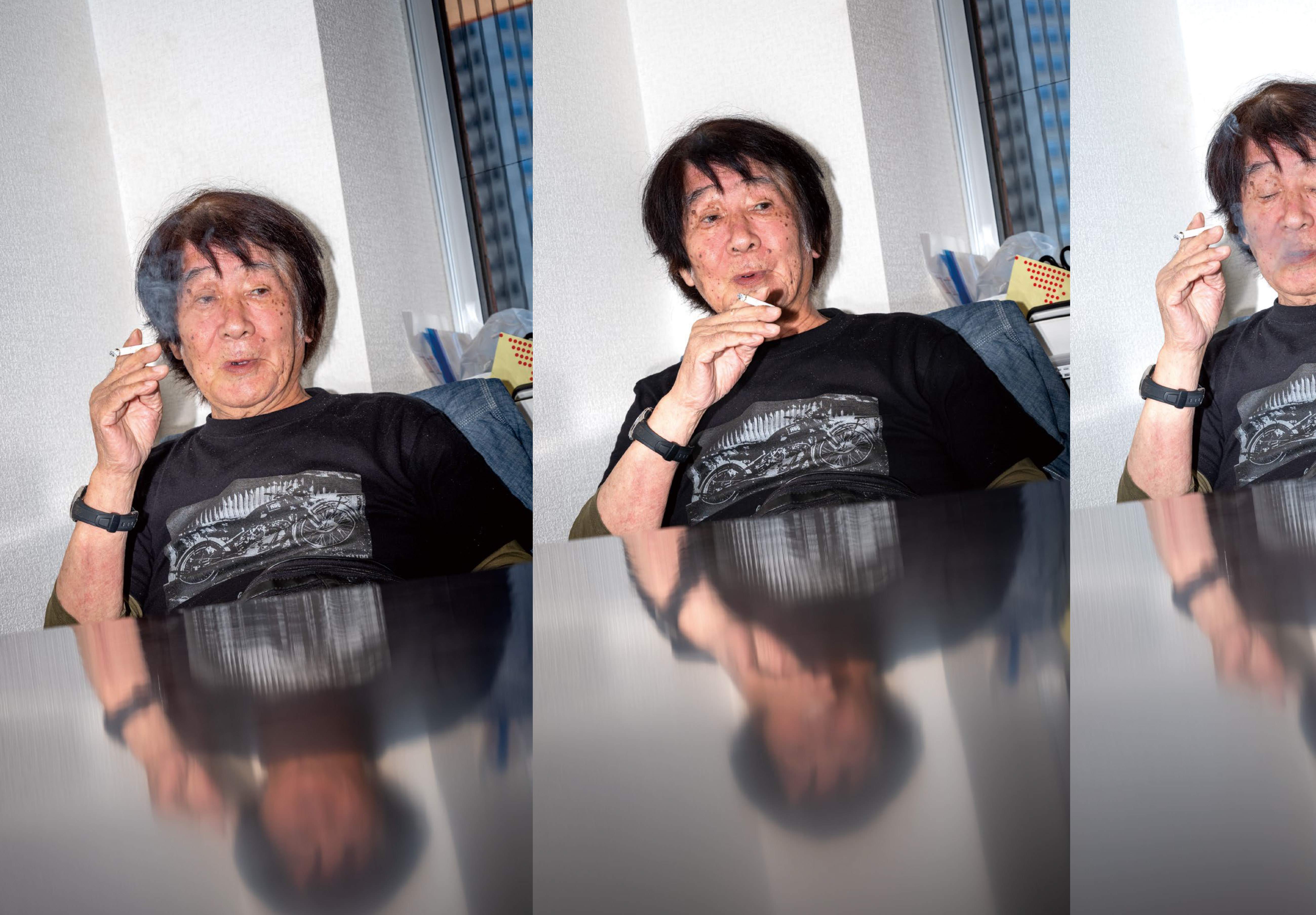A triptych of portraits of the Japanese master, which Feng took in his studio that day, are now included in his newly published photo book, simply titled Tokyo. Featuring wild photographs of street encounters and staged moments with his friends, the book documents his time exploring the expansive city, while also celebrating of the art of street photography, backdropped by one of the practice’s historical centres.