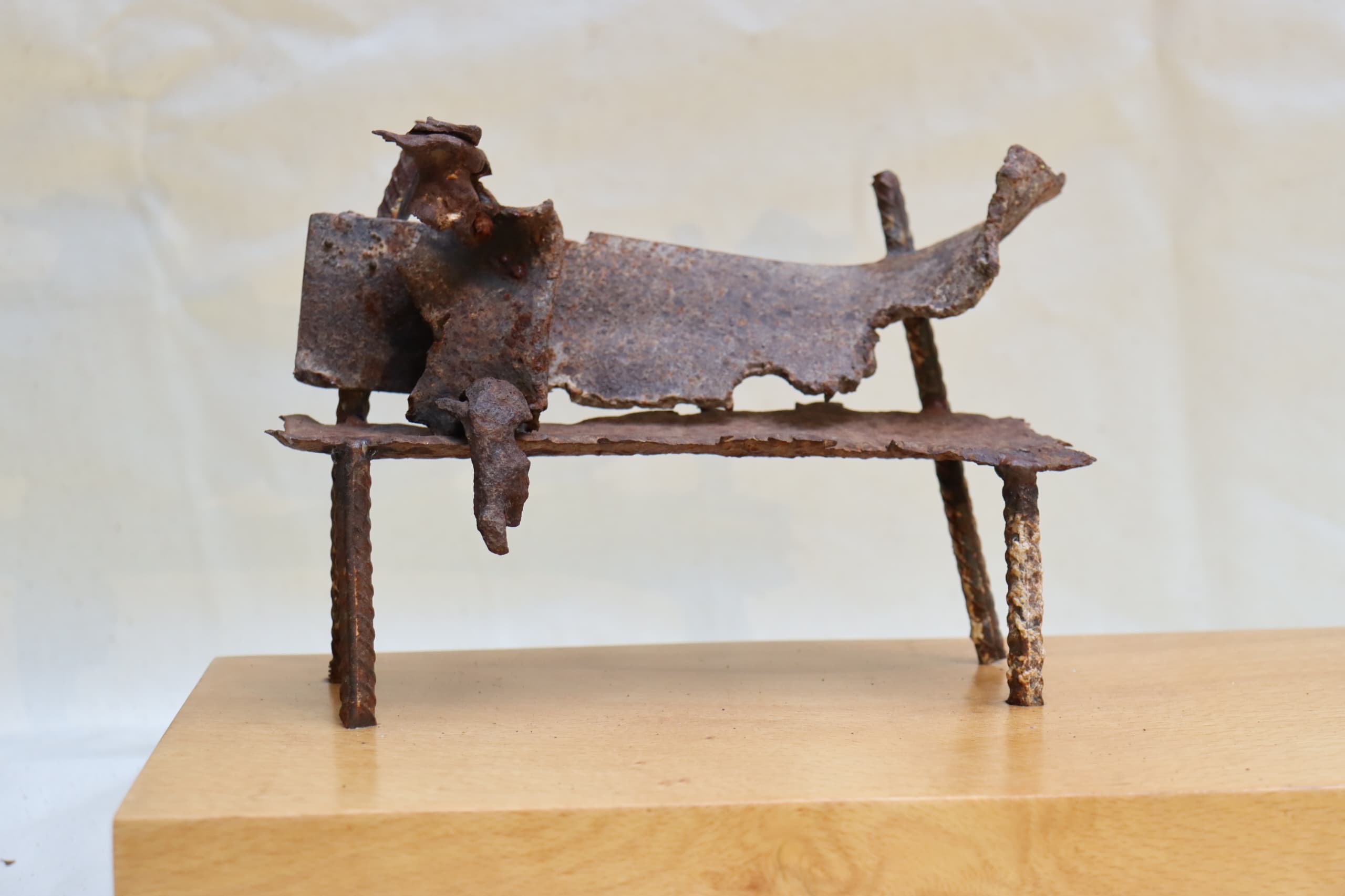 Leading the way is the next generation of artists, pushing the scene into the future by making art that is astounding in its boldness. 18-year-old Syrian-Cuban sculptor, Pedro Naddaf, finds old mortar shells and remnants of war which he transforms from deadly weapons into powerful works of art. I meet him at Damascus National Museum where he has an exhibition; shells that once rained down on people, killing and maiming, are now contorted into beautiful rusted shapes – some abstract, some resembling familiar things, like a bell, a curved spine, even a bench with a person sat on it.