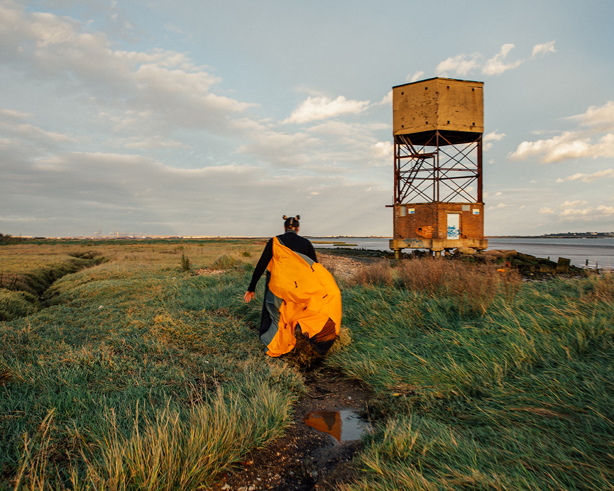 For this feature, Zara chose to be photographed at the marshland at Tilbury Docks – the principal container port of the Port of London, and perhaps most infamous for being where the ‘Windrush Generation’ – those who arrived in the UK from Caribbean countries between 1948 and 1973 – first set foot on UK soil. It’s a place that’s close to Zara’s heart: “It means so much to come down to Tilbury Docks Marsh or Tilbury Bridge for the shoot. It allows me to think, hear and see the land that my ancestors and maternal grandparents arrived on in the UK from Runaway Bay and Kingston, Jamaica, during the Windrush.” At the photoshoot Zara did some field recording to capture the sounds – both natural and industrial – of Tilbury and will be turning it into a body of work.