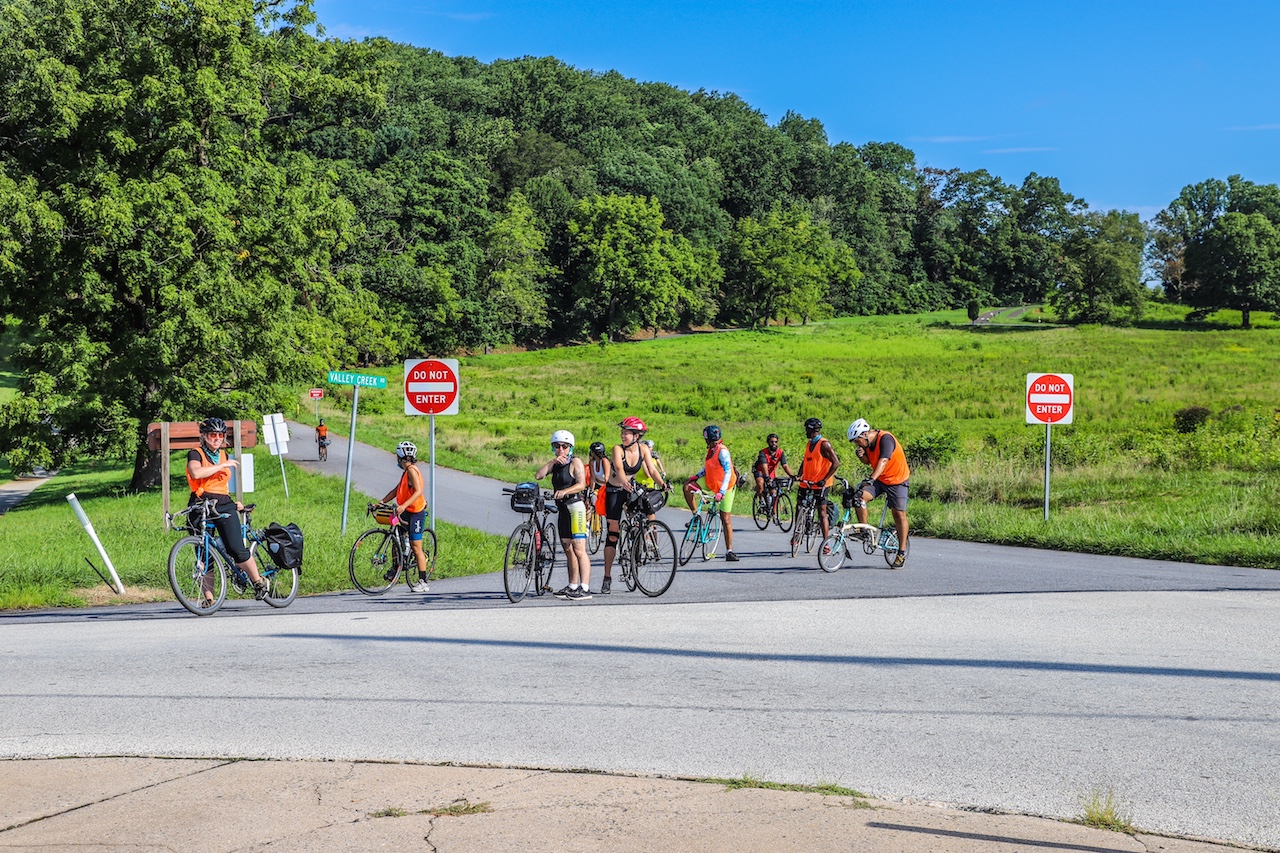 Even the road itself can be a threat: spills on surfaces as varied as the ones from New York to DC are somewhat inevitable; one biker shattered his hip after hitting a patch of loose gravel on a Pennsylvania highway. (Just two weeks after the ride, Sarah Pitts, 35, a Brooklyn prosecutor, activist, and friend of Ride to DC, was tragically killed when she was struck by a bus in the city.) Exceptions considered, the tour was still remarkably safe, as riders shouted out warnings that achieved a certain poetic quality: “Pothole! Gravel! Hazard! Car back, car back!”