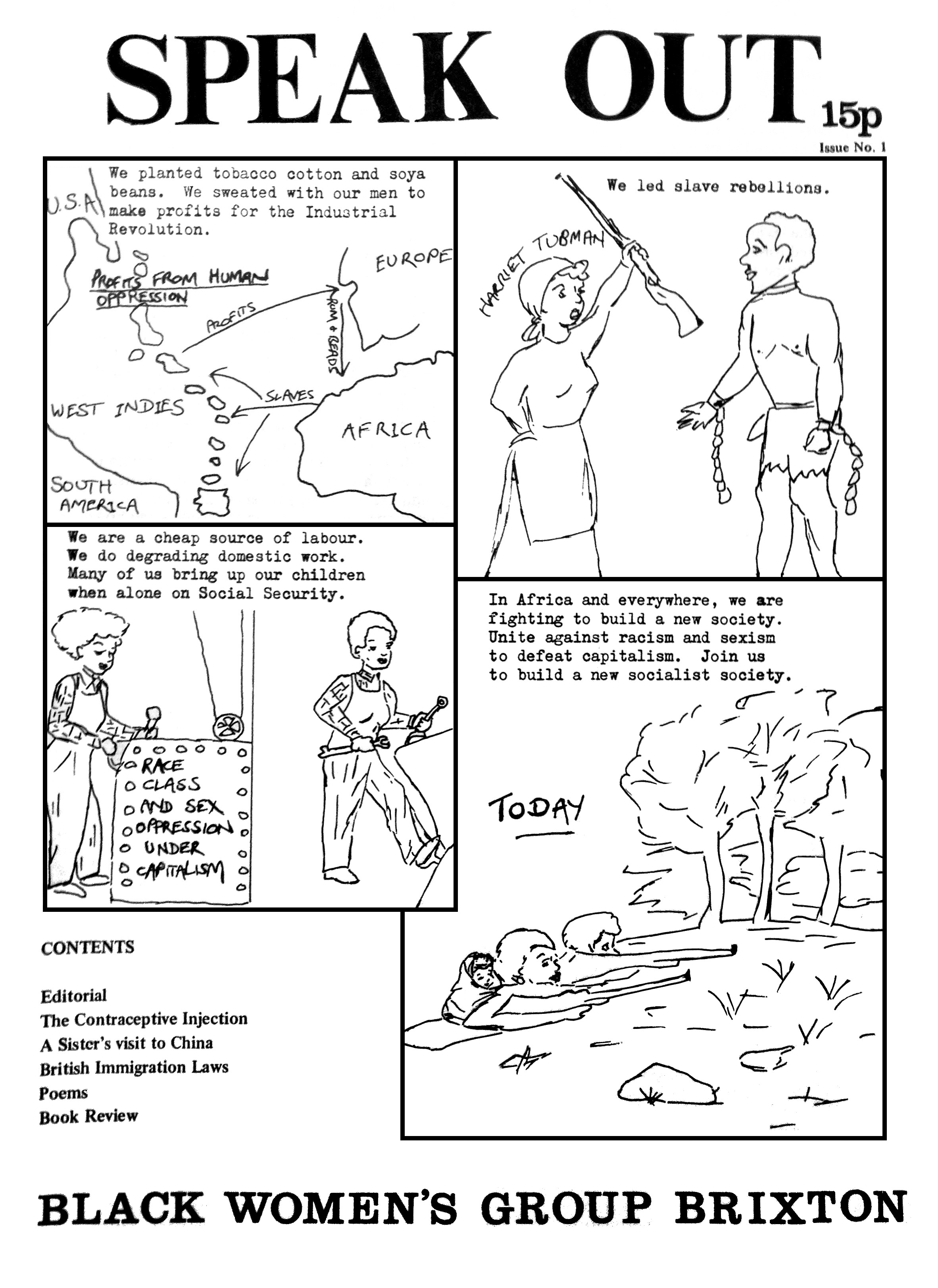 The spirit of collaboration that lay at the foundations of BBWG’s organisational practices found its expressive language within the pages of the group’s Speak Out newsletter, first published in 1977. Lewis describes the newsletter as ‘the “organ” of the group’, a vital contribution to the Marxist – Leninist tradition, in which producing literature that could articulate the organisation’s political vision and provide a resource for mass mobilisation, an essential part of revolutionary struggle. The group resisted their work being assimilated into an institutional frame, seeking instead to speak to the grassroots – those who they were organising in community with and those who were not yet part of the movement but could become comrades of tomorrow.