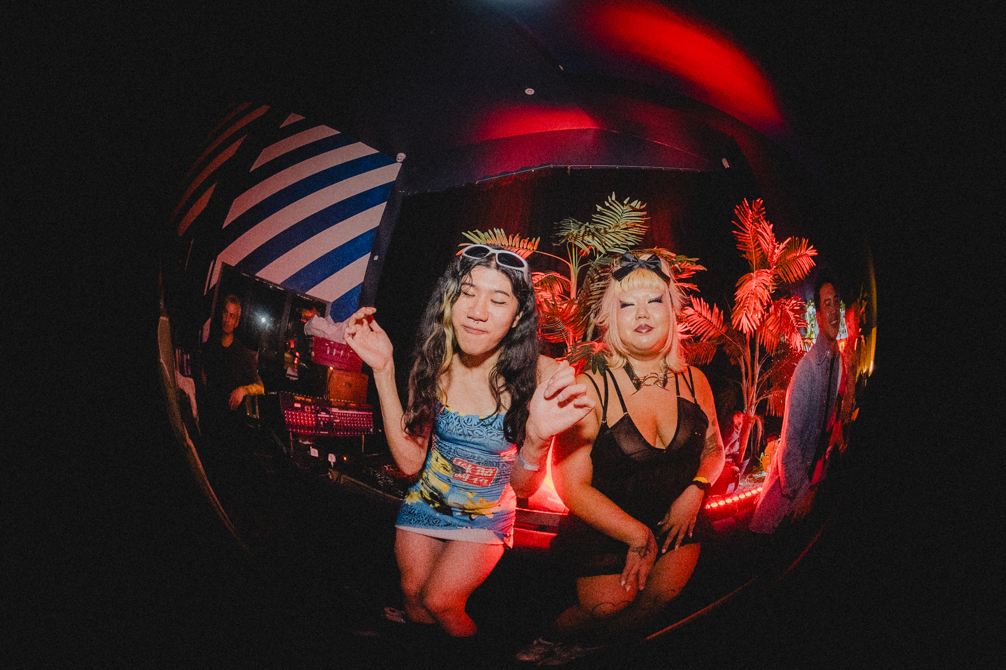 At around 10pm, as Phase 2 turns into Phase 3, there’s a surprise waiting in the Kitchen area for those filtering out from the Theatre room. With sleazy house grooves moving the dancefloor, manning the headphones and CDJs is none other than British Chinese actor Benedict Wong performing as DJ Obi Wong and The Temple of Bangers. His set ends on an edit of The Black Eyed Peas 00s classic ‘My Humps’, which is underscored by a wiggy, minimal tech house beat that goes on and on. “Benedict Wong was a surprise to everyone,” Jay explains. “He messaged David saying: ‘I’m going to come to Margins United,’ and next thing we find out is that he’s a little bit of a DJ and wanted to get on – we had to make it happen.”