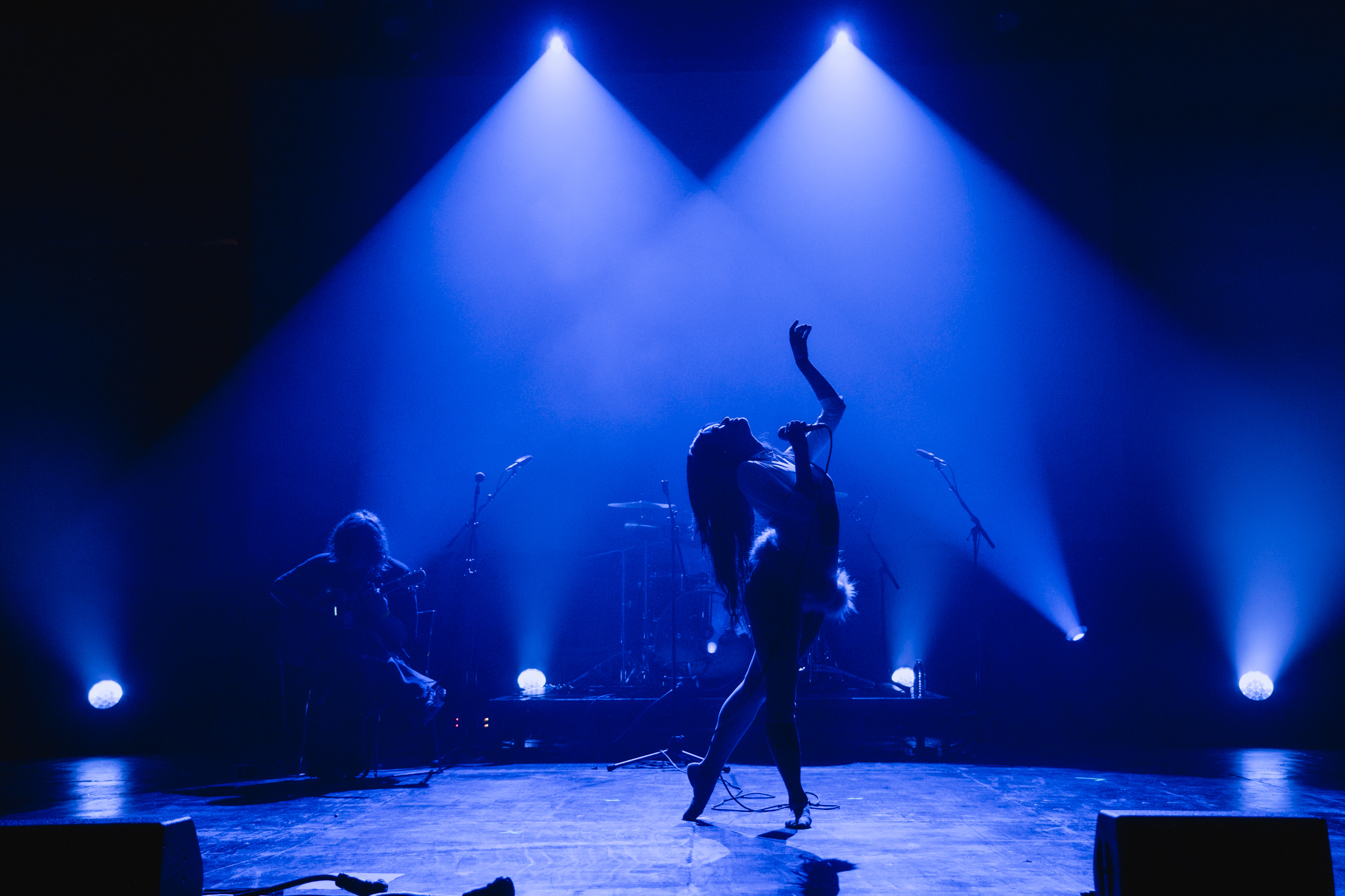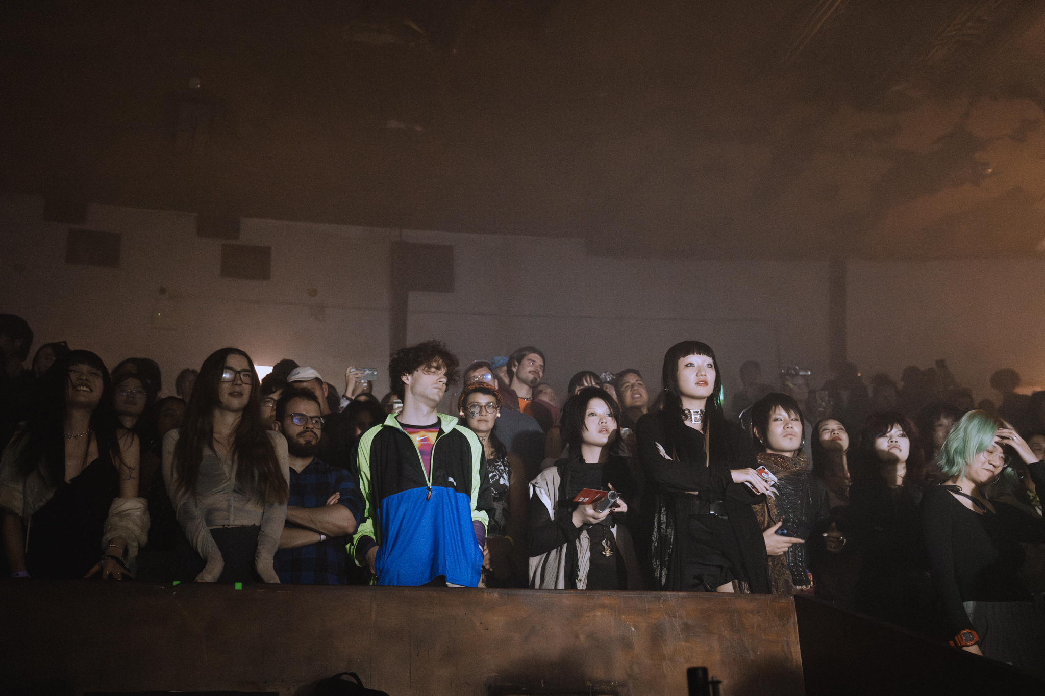 Phase 2’s programming mostly takes place in EartH’s grandiose-yet-rustic Theatre room, where steep steps descend towards its stage. Instead of dance music, the line-up leans towards live acts, including the ambient and shoegaze of LVRA & Soda Plains and ONRA’s experimental hip-hop productions. A particular highlight, though, comes from punk rocker LIA LIA. The Berlin-based vocalist stands in the middle of her bandmates, all of them donning school-uniform reminiscent white shirts and black ties, and the group launch into a set of distorted guitars and noisy grunge-punk.