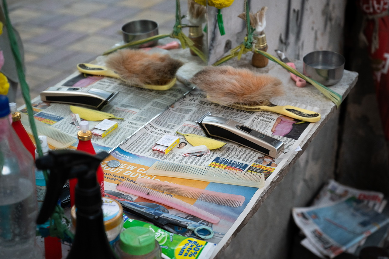 When I visited the country one year on, India’s bustling street side was just beginning to return to its former self. The street-side barbers, or nais (pronounced na-ee), were once again carrying out the daily shave or occasional trim for their customers.