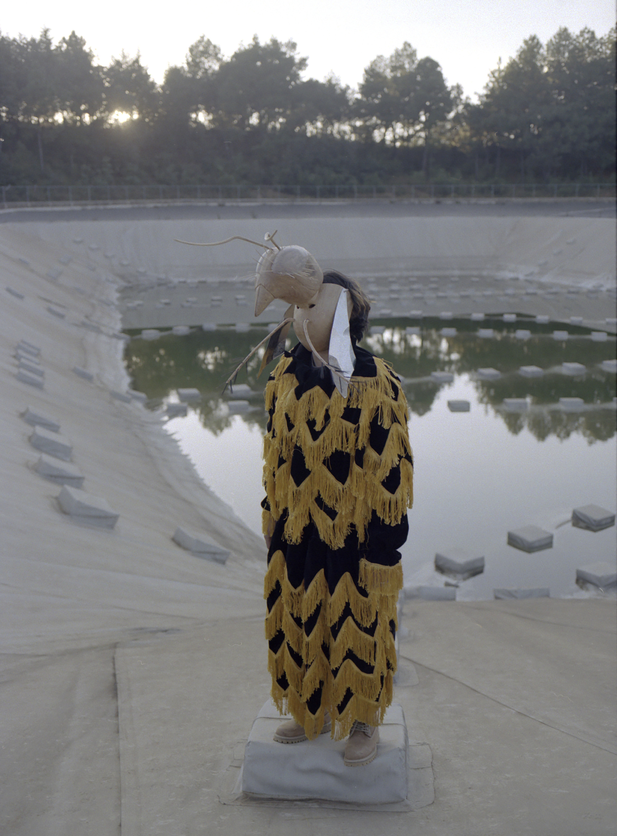 There is so much to be learned from Indigenous rituals, and these references ripple through Oro Verde. “Their relationship with the woods is not just economical, it is completely spiritual,” says Gonzalez Garcia. Each year, in a coming-of-age ceremony marking the post-Easter event of Corpus Christi, young people are sent into the forest to scavenge for bees’ nests. These are carefully brought home and attached to wooden structures decorated with branches, wild flowers and stuffed animals. The young people dance for days on end with these huge, humming sculptures attached to their backs.