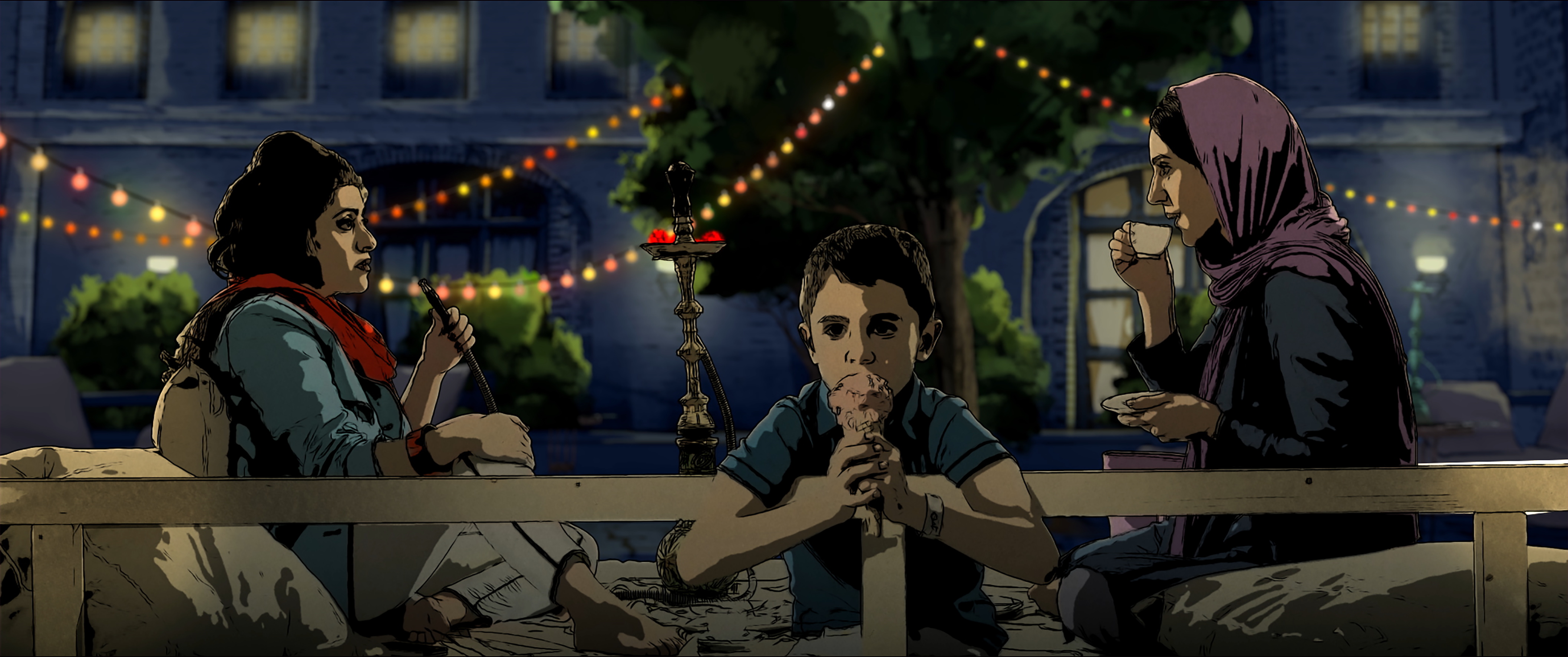 In his full-length directorial debut, animator Ali Soozandeh skilfully weaves together the stories of his three main characters. There is sex worker and single mum Pari (and her mute son); bored and newly pregnant lower-middle-class housewife Sara; and Babak, a struggling musician who finds himself raising money to restore the virginity of a girl he had a one night stand with. Through a series of intersecting municipal miseries and challenges, the three unlikely figures end up living in the same apartment complex, their lives becoming increasingly intertwined as the story develops and their problems overlap.