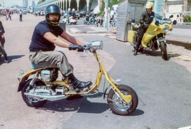 Scarborough Easter ’79 was my first rally and a real eye-opener. My scooter was bust, so I went on the back of a mate’s. It was astounding: 10,000 scooters and the smell of 2-stroke everywhere. Those rallies broadened your horizons and exposed you to new music: Motown, Stax and a bit of Northern Soul, but also the Psychobilly thing. They also introduced me to stay-up-all-night pharmaceuticals.
