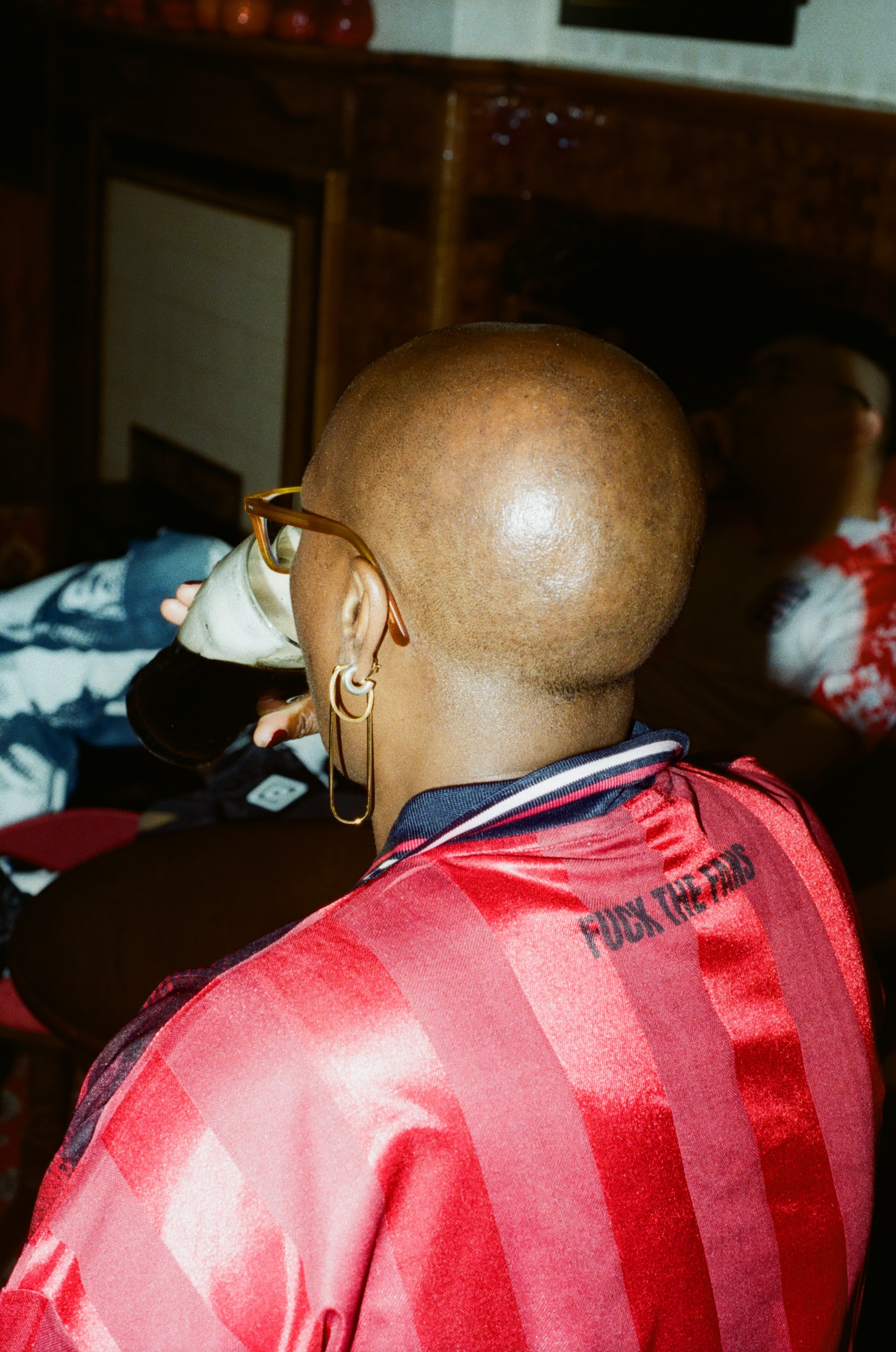 There’s a diverse crew of people in the shots, from Black and Asian fans to a drag queen, challenging the typical white, cisgendered ideas of fans that tend to dominate the popular consciousness. It gives a broader representation to both the UK and the world’s most played sport, and whose fans are from every conceived background under the sun. That ideal is also put into practice in the collection, with 20 per cent of proceeds being donated to Football Beyond Borders – a charity that aims to engage young people from disadvantaged backgrounds at school via their passions for football.