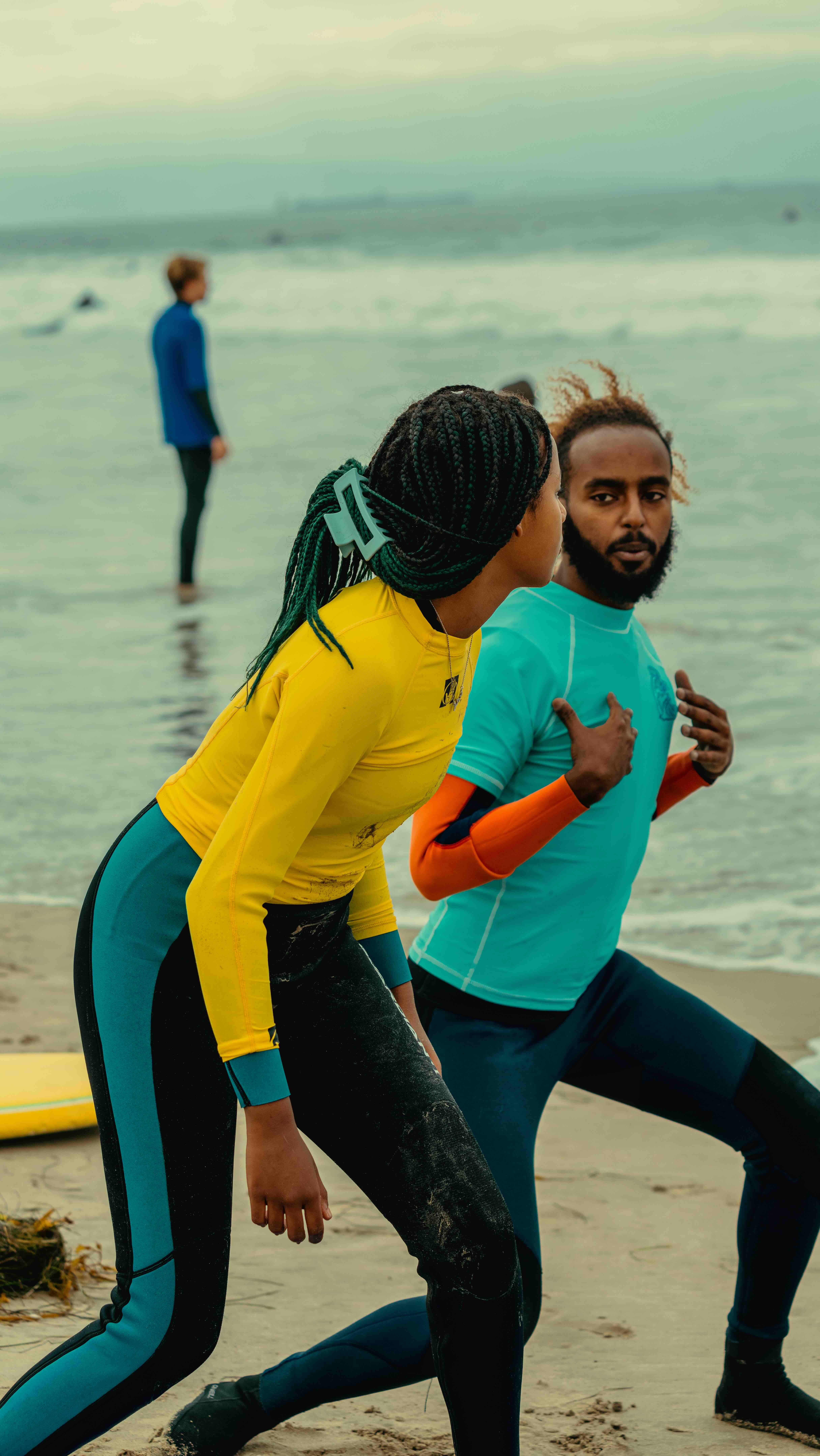 As a woman who surfs and has often felt like I’m trespassing on a sport that purely exists for young white dudes, I was heartened by how many women are included in the film. “It was very important for me to feature a lot of women surfers,” says David, who wanted to overturn the gender stereotypes that say black men can’t swim and black women don’t get their hair wet.