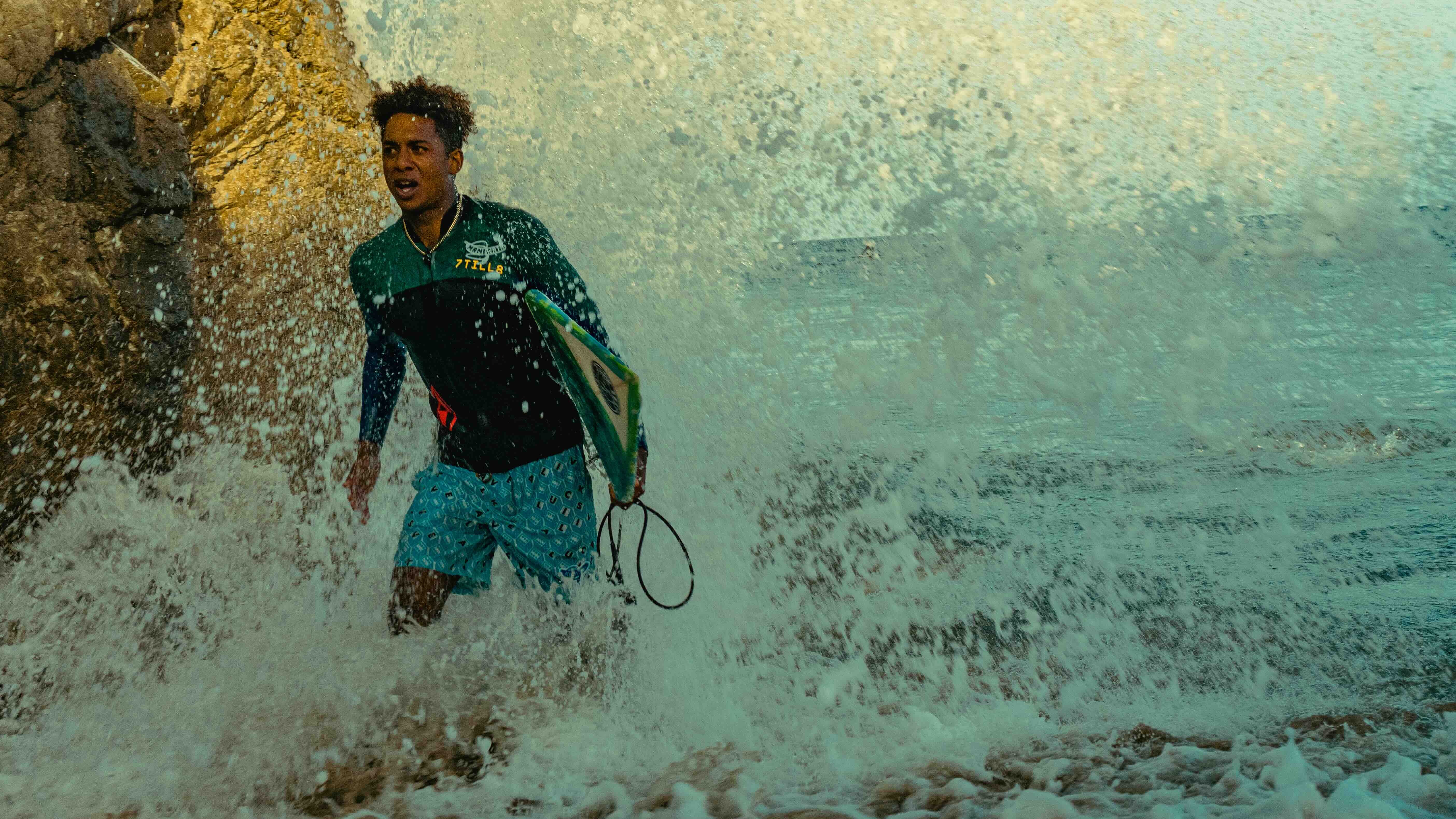 Visually, Wade in the Water looks different to regular surf movies, and not just because all the featured surfers are Black. “I have my palette on how I like to tell stories and I didn’t really need a reference point from [mainstream] surf culture,” says David. “This was a narrative that needed to be told through an African American lens. That makes it like a new language that other people can look at and be inspired to do their own version of their story.”