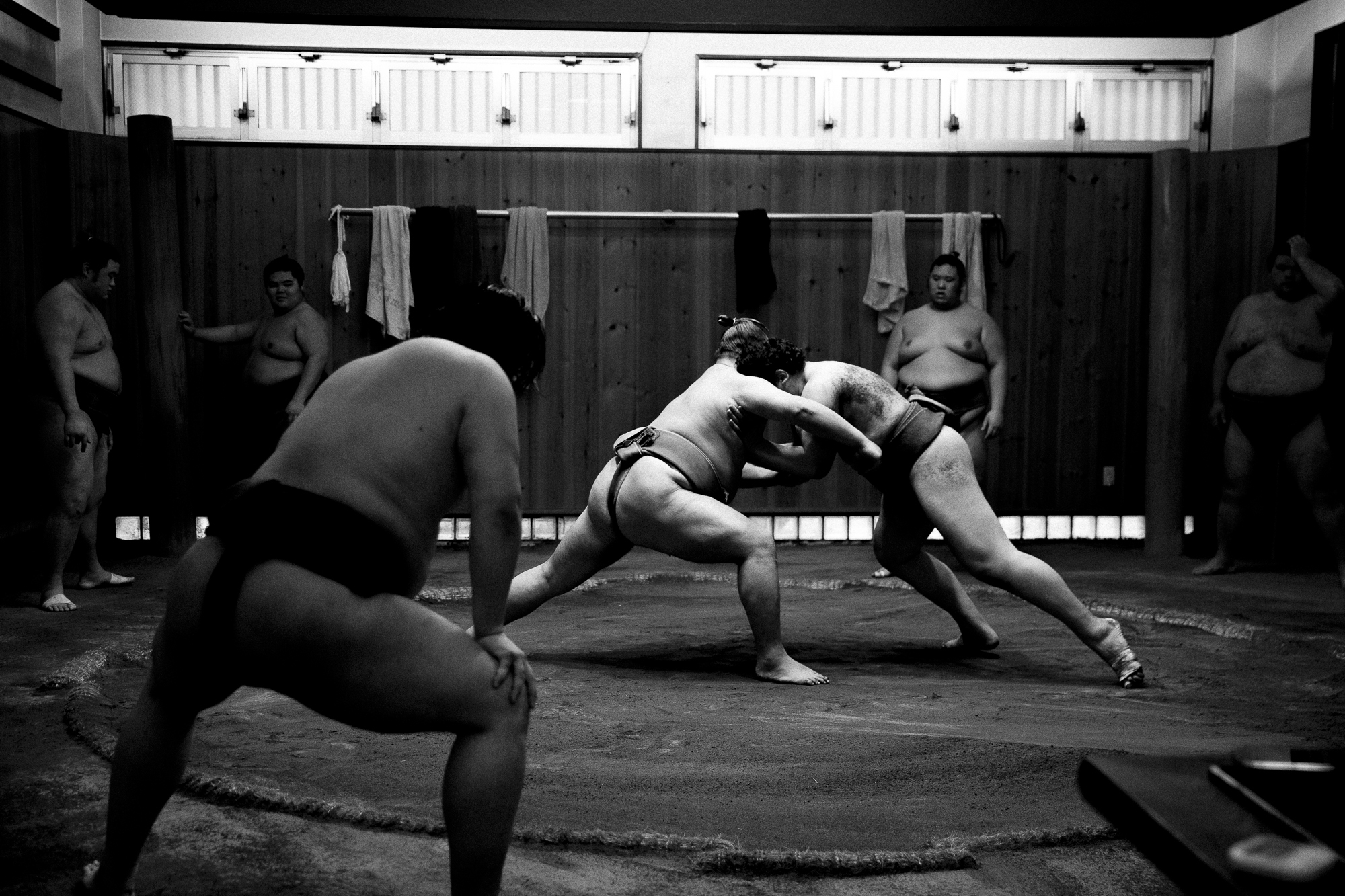 His superior’s patience was quickly wearing thin, the sloppy hand movements from his young protege were frustrating. The mentorship turned aggressive as hair was pulled, and bodies thrown onto the sandy floor, before the struggling young Sumo was pulled up onto his feet to complete the whole process again.