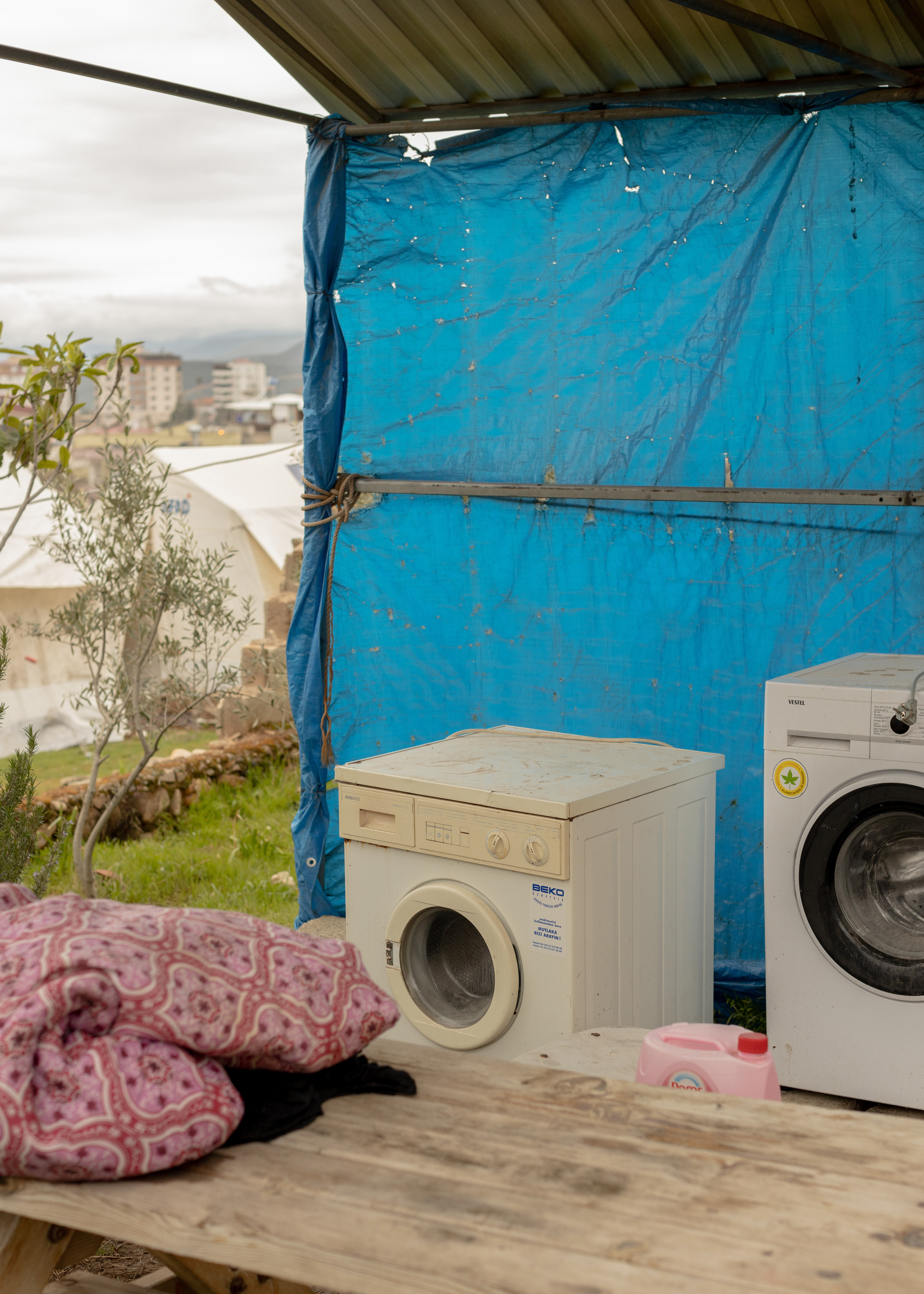 While concerned and left in uncertainty, Ali and Idil have continued to support the community with the little they had left – a 30-year-old washing machine was placed in their garden and made available for the whole community to use. When it broke a few weeks later, a neighbour stepped in, bringing his washing machine close to Ali’s and creating a small communal laundry.