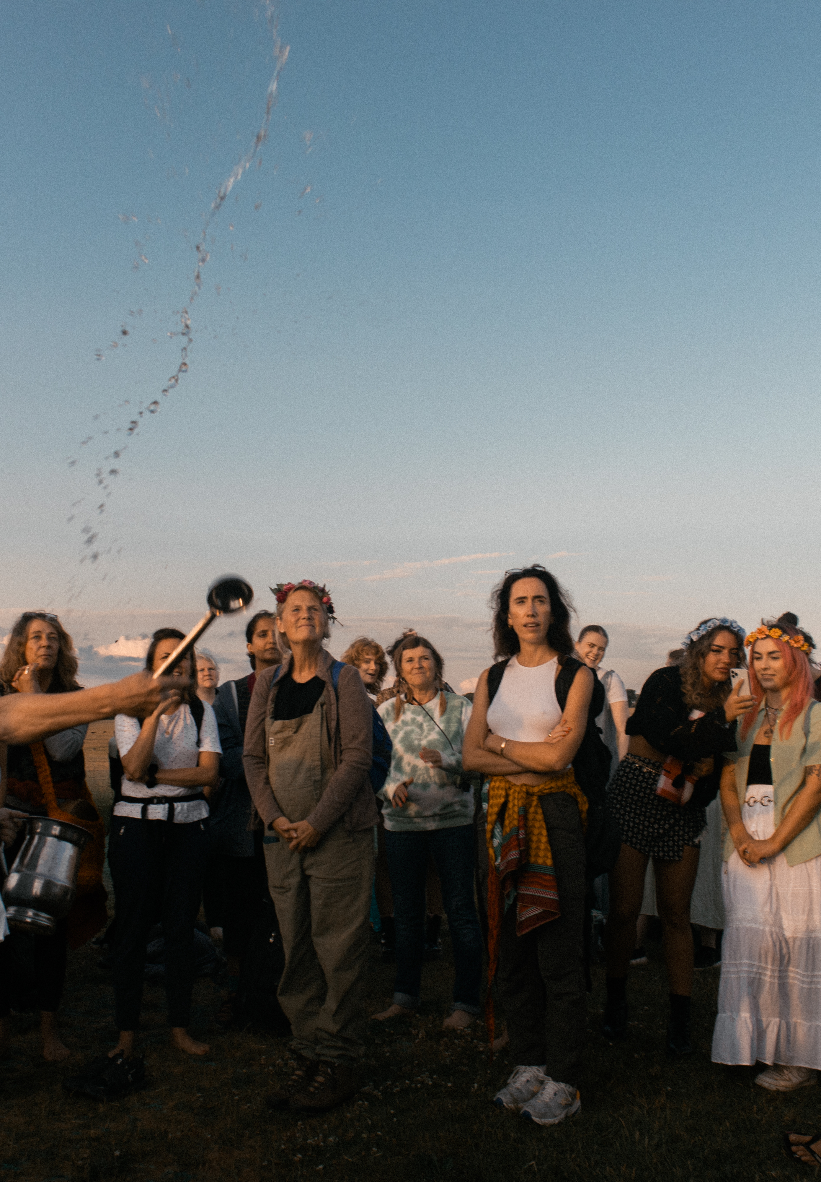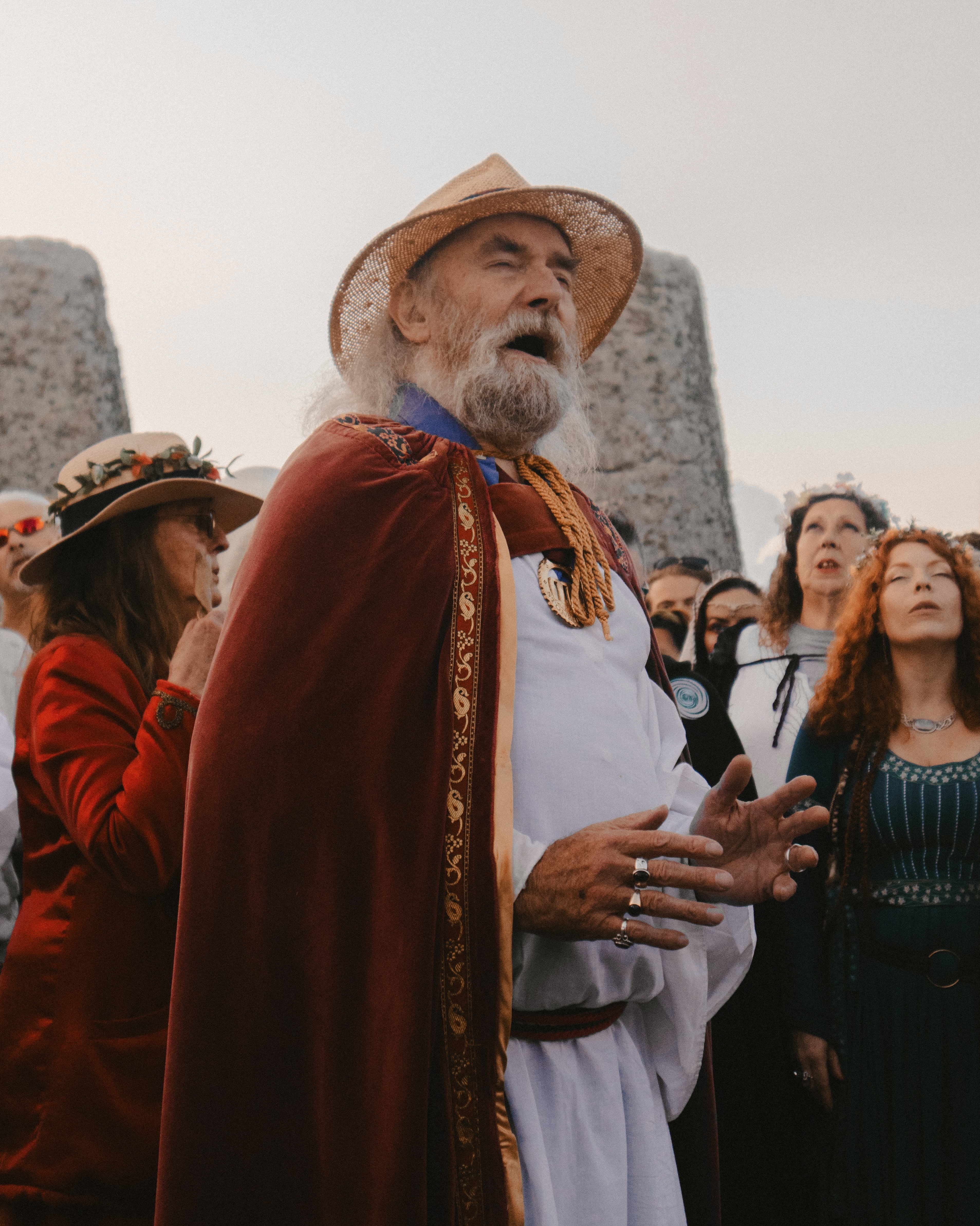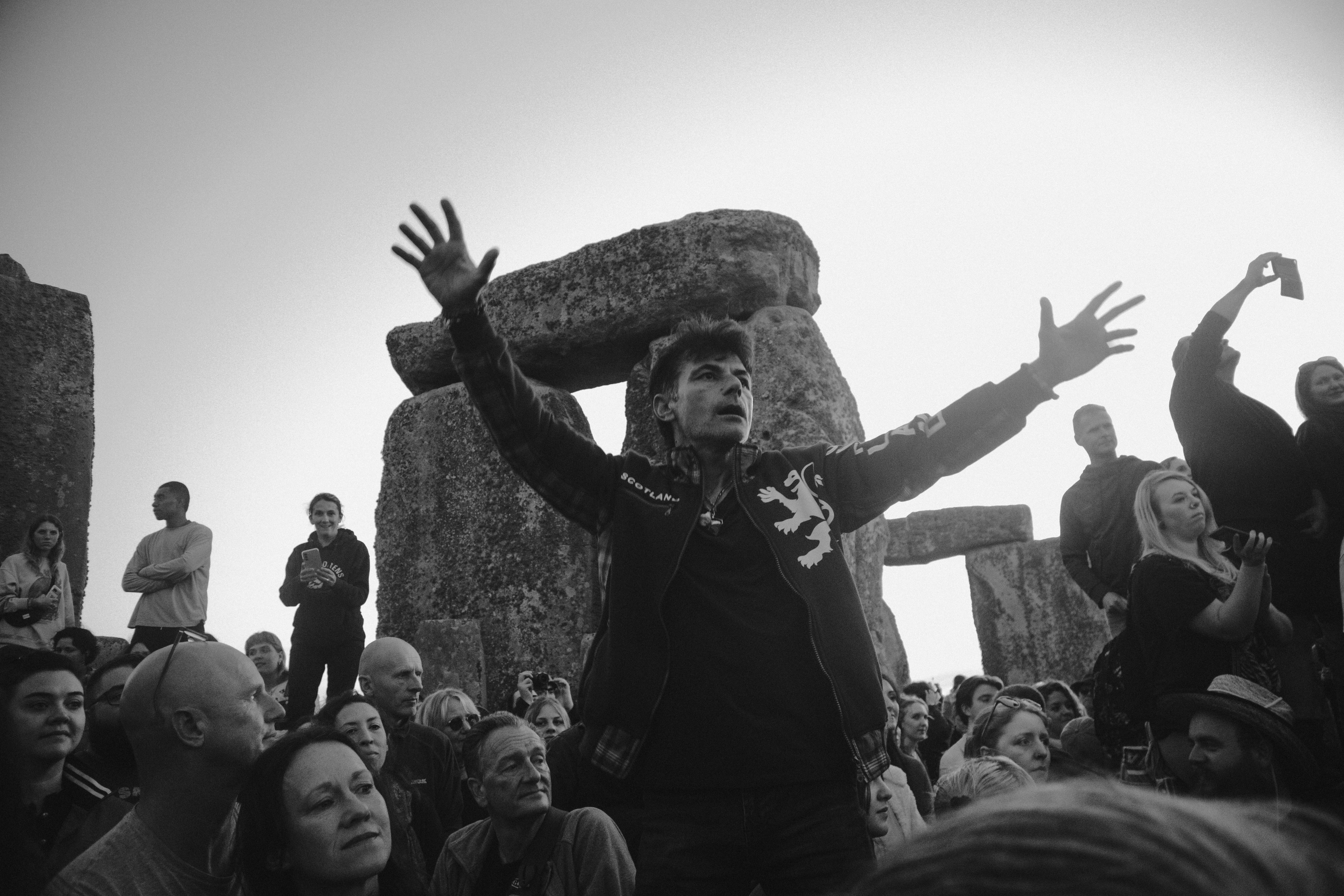 As the light began to appear at around 4am, the crowds make their way inside the stone circle, a densely packed coterie of spiritualists eagerly anticipating the moment that brought us all here. The drum circle breaks into chorus, quickening in tempo with every minute. Rhythmic chanting and clapping cascades between the stones, welcoming the sun into the infancy of a new day. The British Druid Order, led by senior Druid Arthur Pendragon, takes the ceremony closer to the Heel Stone. As the crowd was at its fullest, close to 10,000 people, communities formed and all fell silent to watch the sun break from the horizon into full view. Everyone cheers, and at once we are bonded in tender singing of centuries-old hymns: “This land is all that we have for sure.”
