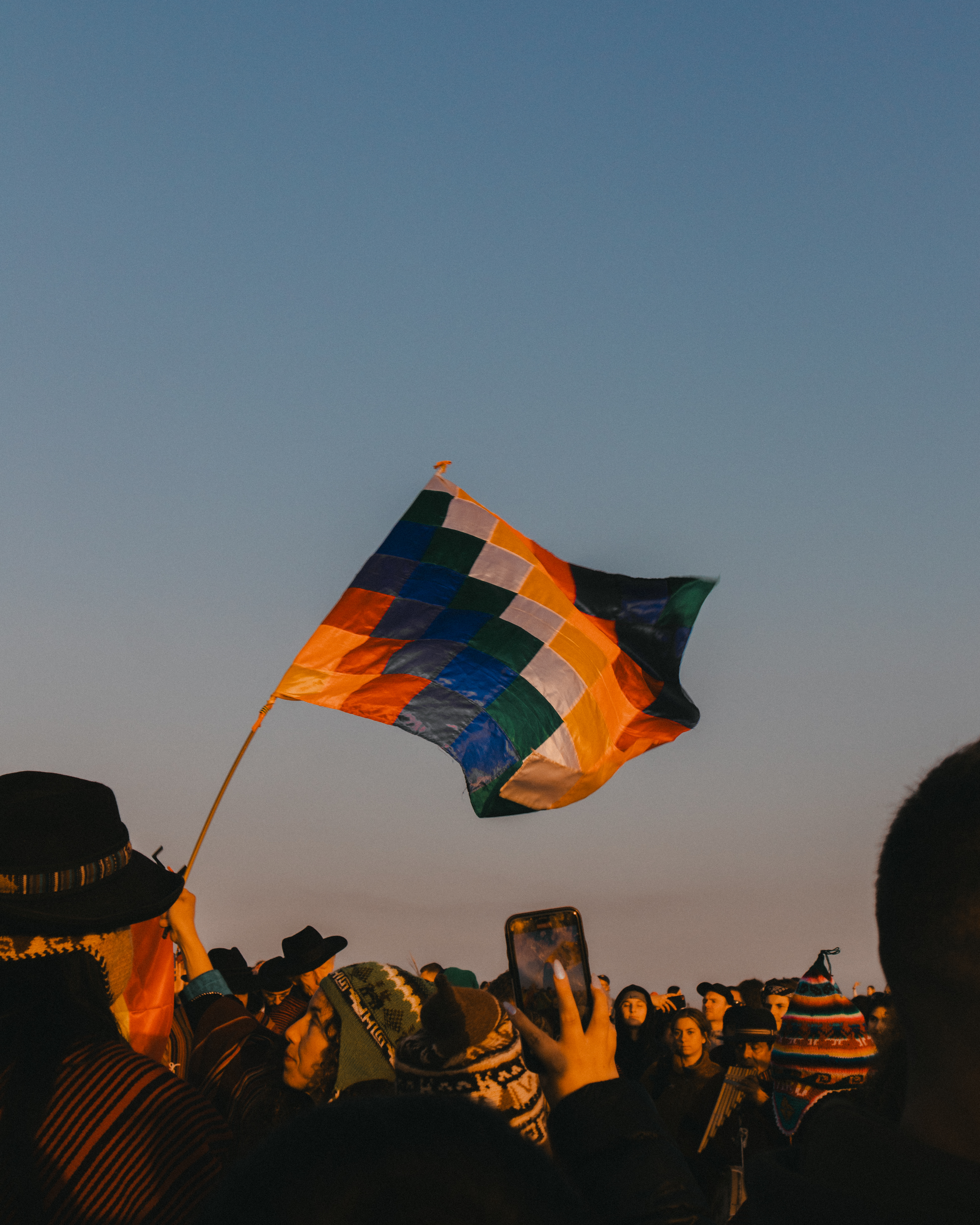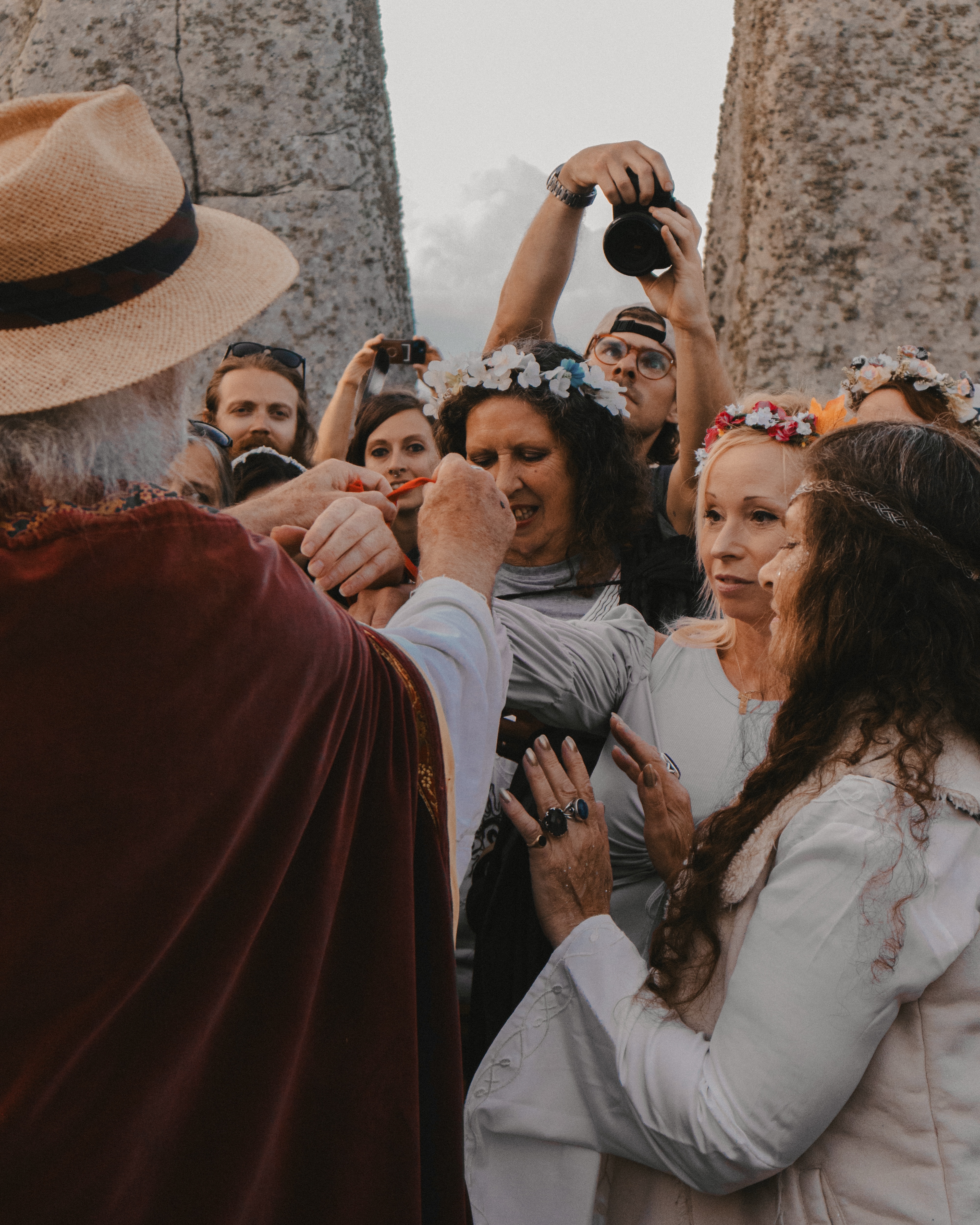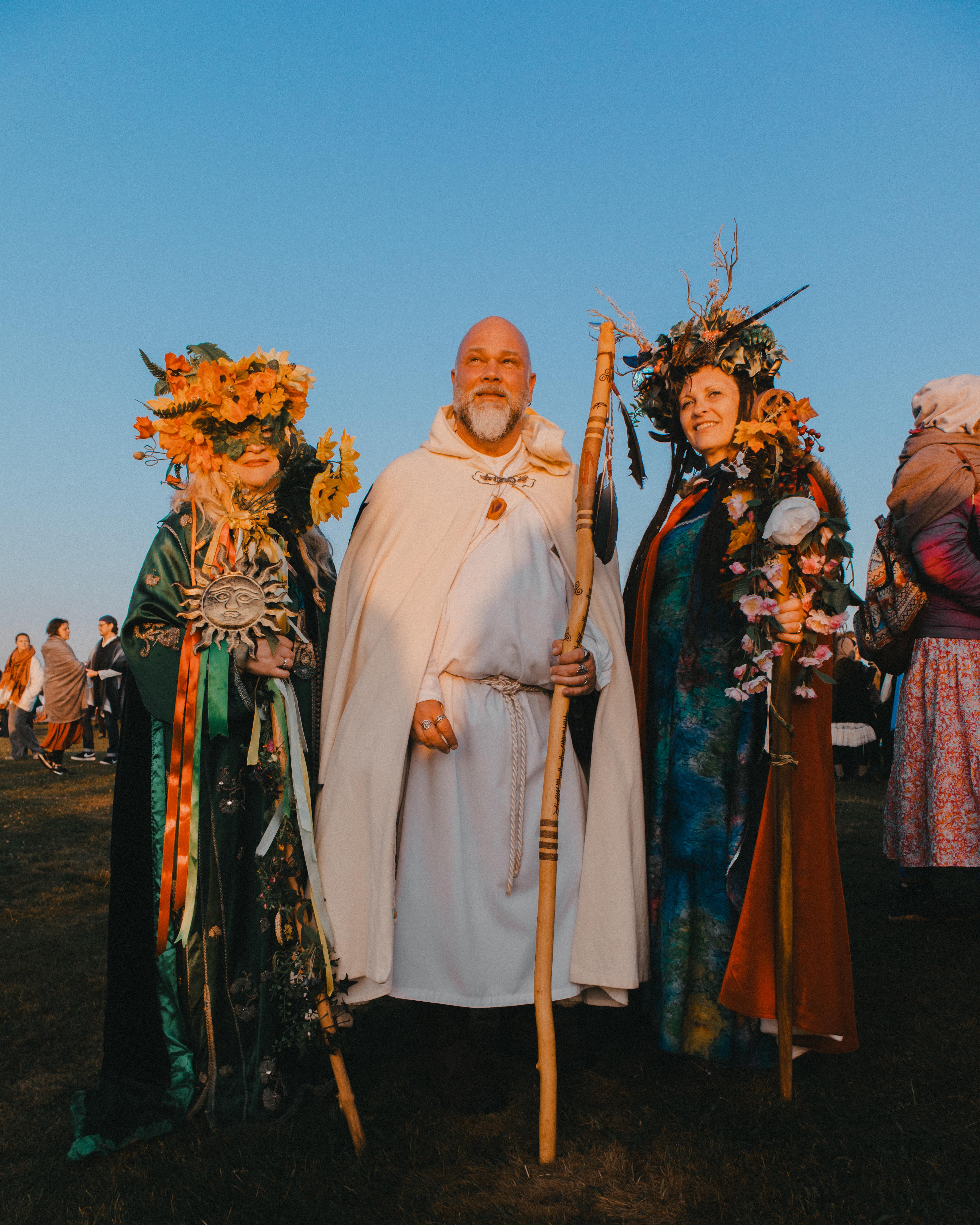As the light began to appear at around 4am, the crowds make their way inside the stone circle, a densely packed coterie of spiritualists eagerly anticipating the moment that brought us all here. The drum circle breaks into chorus, quickening in tempo with every minute. Rhythmic chanting and clapping cascades between the stones, welcoming the sun into the infancy of a new day. The British Druid Order, led by senior Druid Arthur Pendragon, takes the ceremony closer to the Heel Stone. As the crowd was at its fullest, close to 10,000 people, communities formed and all fell silent to watch the sun break from the horizon into full view. Everyone cheers, and at once we are bonded in tender singing of centuries-old hymns: “This land is all that we have for sure.”