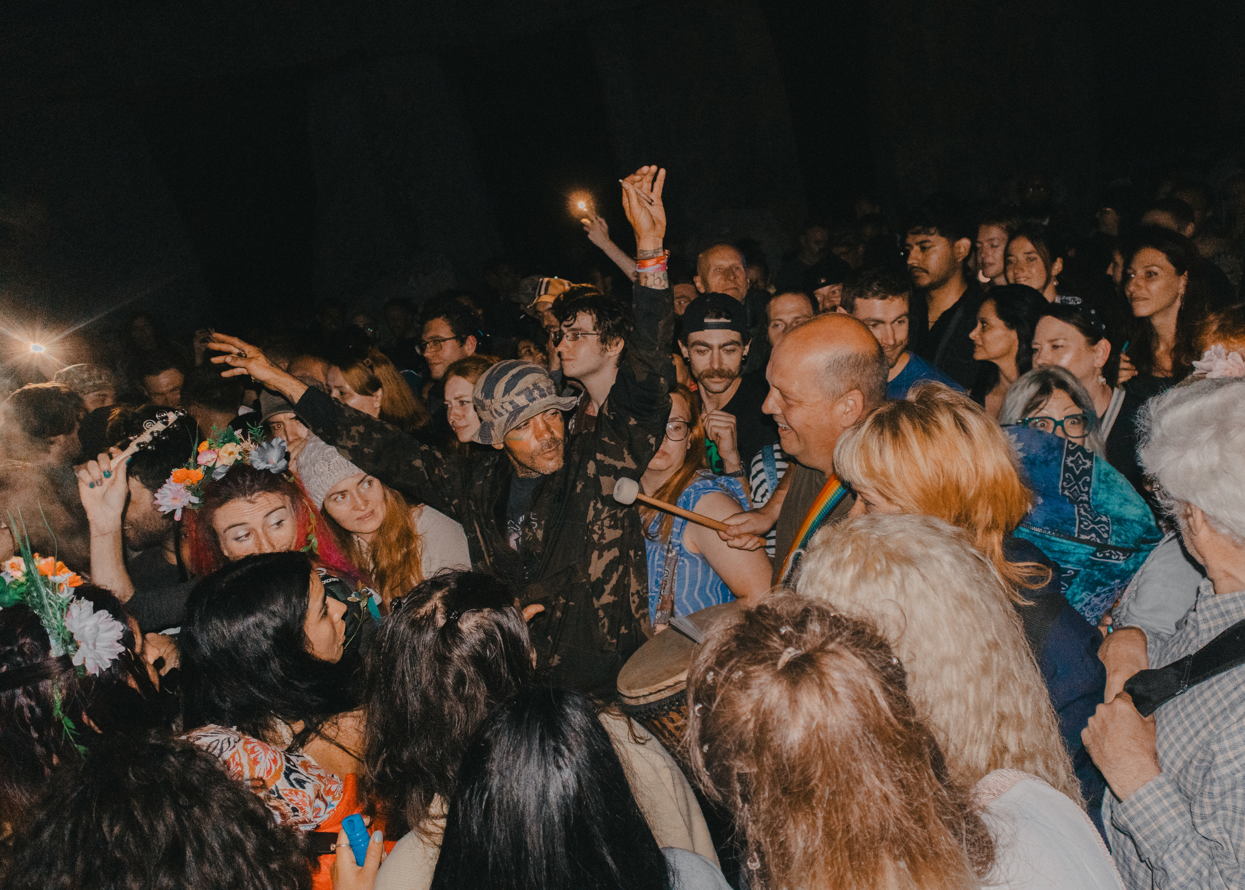 The sun is almost set and the night is upon us. In the heart of the Sarsen Stone circle, a menagerie of instruments lifts their voices. Banging drums, harmonising flutes and violins, cajóns and guitars burst into an improvised song to be heard once and only once, revelled in by whooping devotees and bystanders alike.