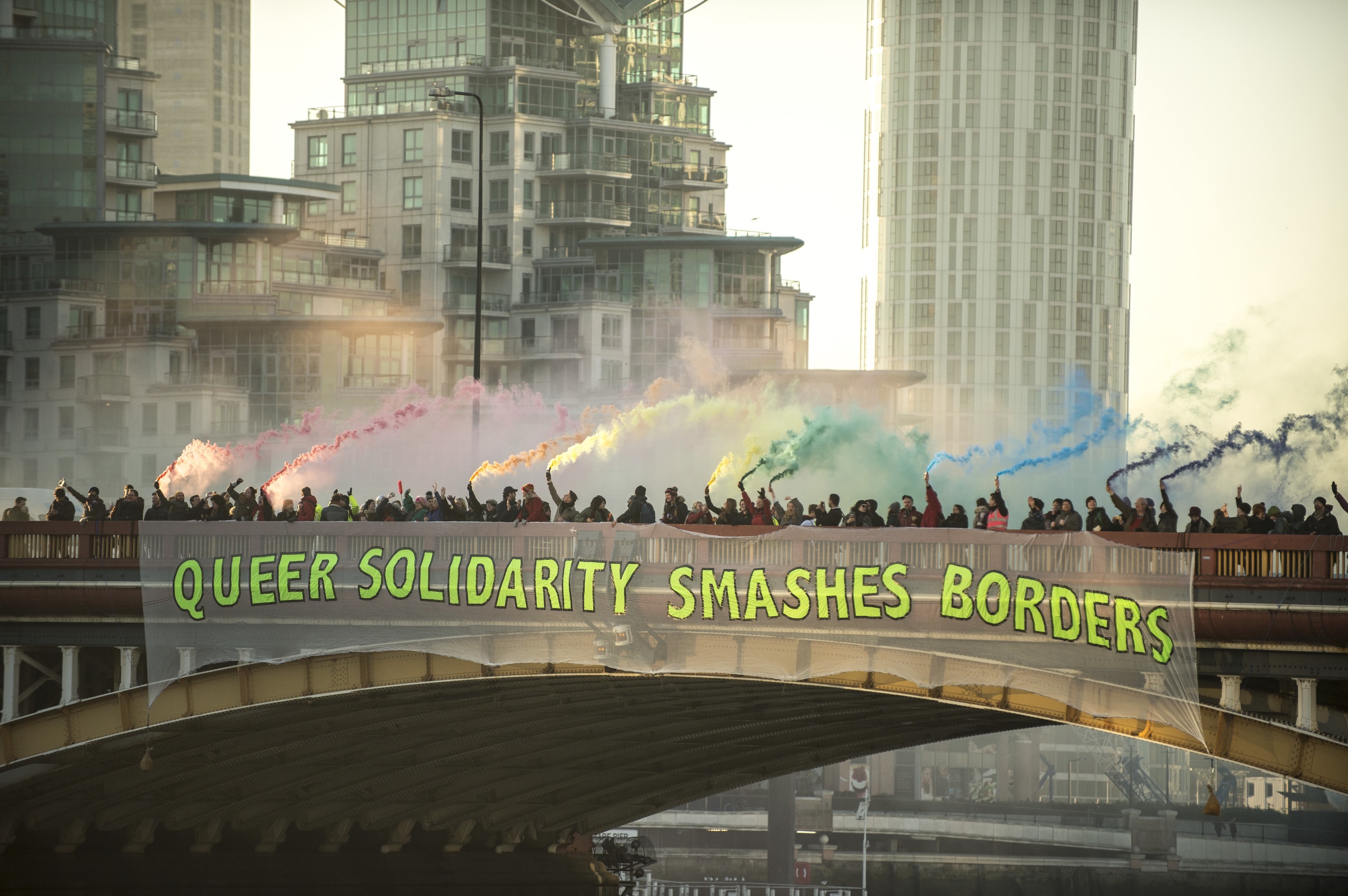 Fuck Trump — As the world wakes up on the day that Donald Trump is inaugurated as President, hundreds of activists take to London's bridges in defiance, with one simple message: Bridges not Walls.
