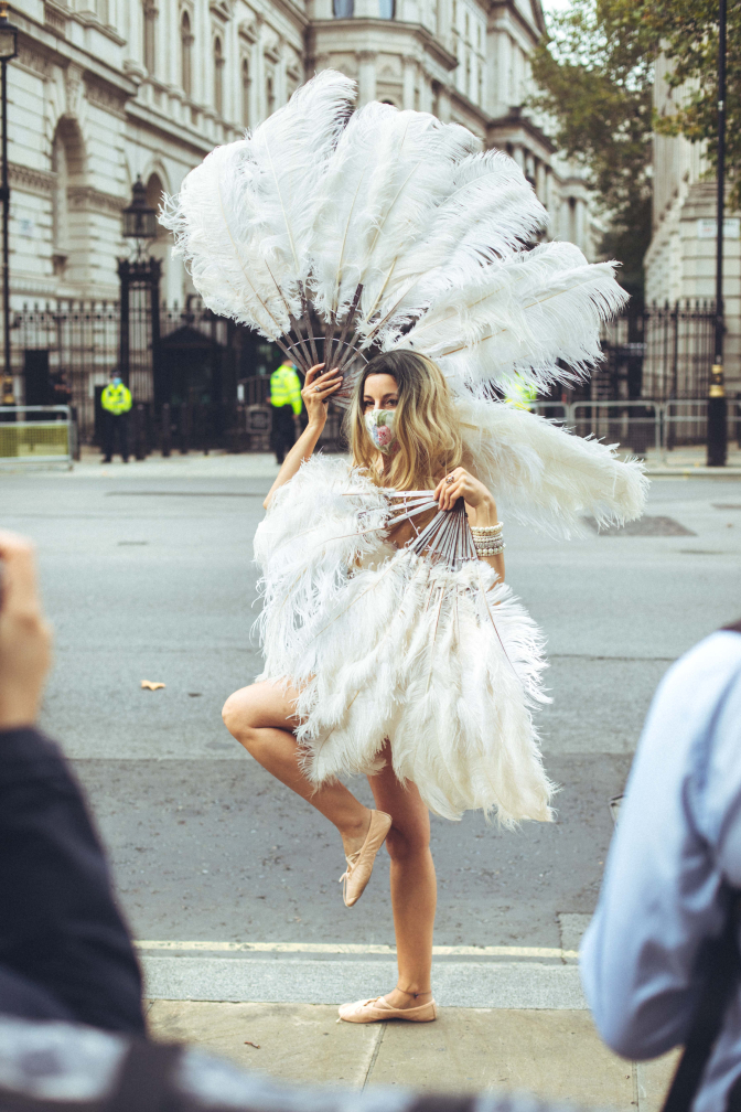 “There are loads of ways the government could have supported production,” he says, citing pod working, rural touring and COVID-secure reopening of theatres as examples. But Fleming says that attempts to engage the government on the issue have been met with “a wall of silence”. It’s should come as little surprise, then, that despite an appearance of frivolity – as pantomime dames struck camp silhouettes across the darkening sky and posed for photos with members of Parliament who’d come to show their support – there’s was a quiet desperation underpinning the demonstration.