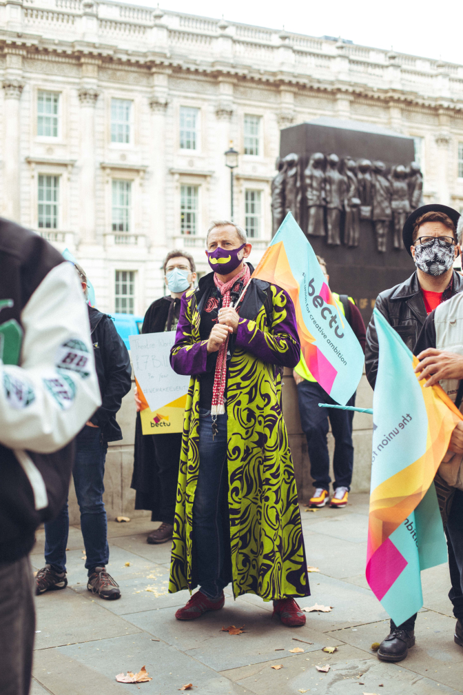 “I’m here showing solidarity with my colleagues, some of whom haven’t received any assistance from the government at all. Actors are very resilient people but legions of people are leaving the business because they’ve got to pay the bills and some of those will never be able to afford to come back.