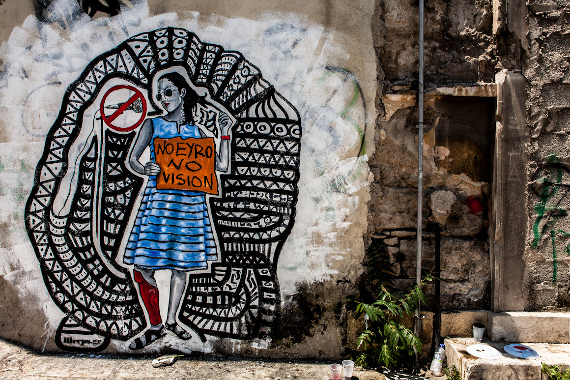 A different story from the streets of Athens — Street artist Bleeps.gr was making street art long before the economic crisis hit Greece. But with the social and cultural impact of the nation's turmoil, his art has reflected the changing views of the dissatisfied voices he comes into contact with. His identity is anonymous, but he won't stay quiet.
