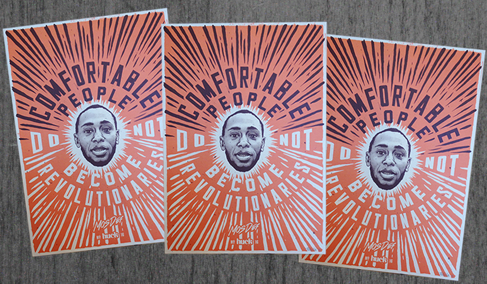 Radness To Be Won! — We're entering all Huck Twitter followers into a draw to win an amazing Mos Def poster by Timba Smits. Winners will be announced once we hit 20k followers.
