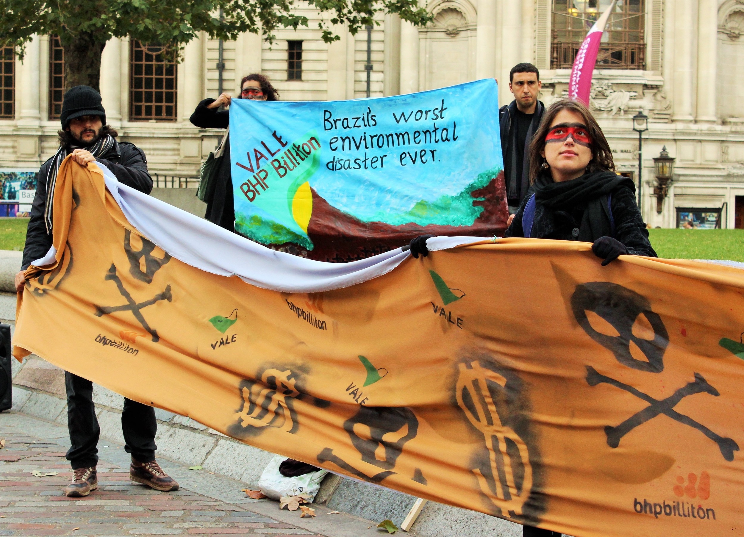 Demanding accountability — Brazilians affected by the fatal Samarco dam disaster in 2015 share their stories of lives destroyed and present community demands for reparations to mining corporation BHP Billiton’s London AGM.