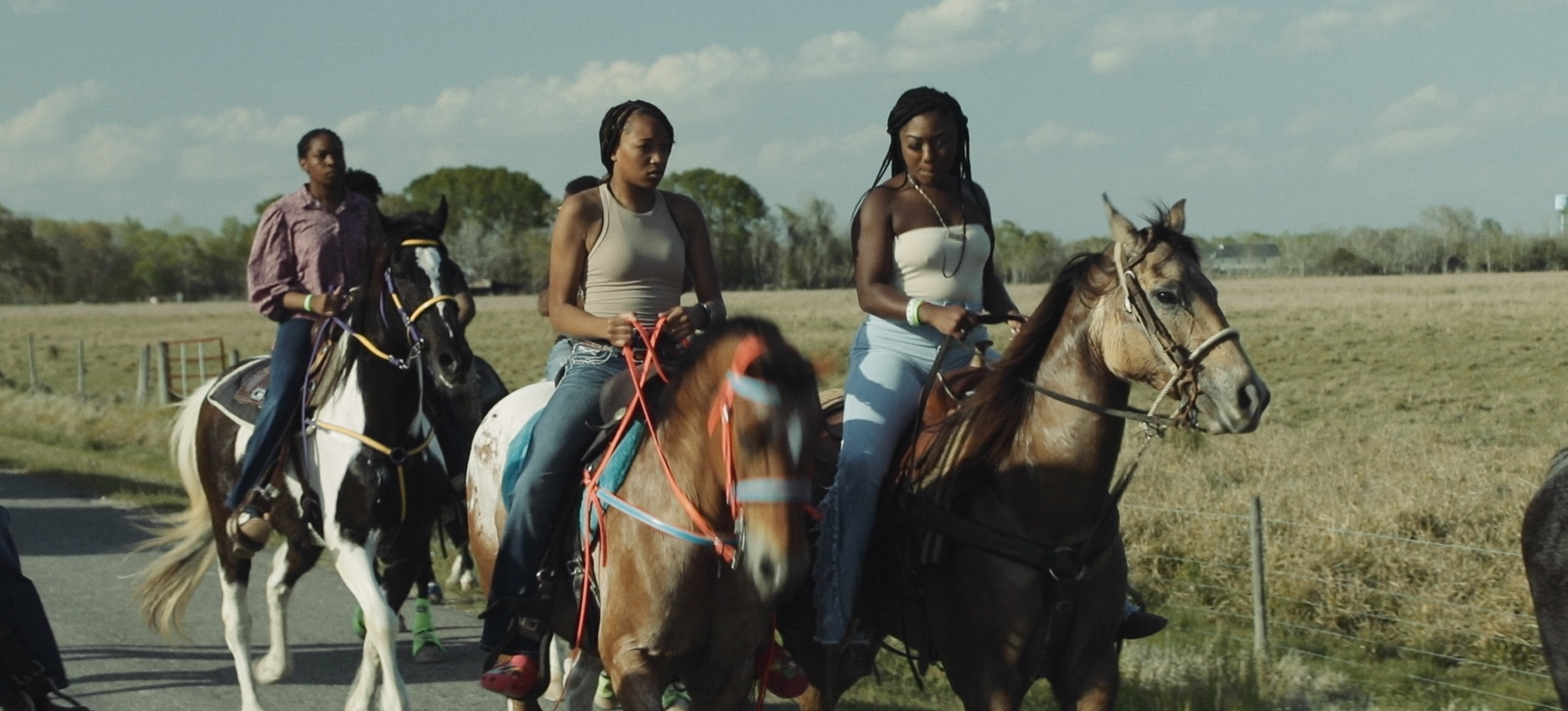 Although the visuals were shot over one weekend-long trail ride, the film’s narrative structure emerged from nearly two years of conversations with Ashley and Queliquia Darden, the film’s other main protagonist. “The Texas Regulators call their own histories into existence,” Gwennie says. “The structure was led by how they narrated the activity.”